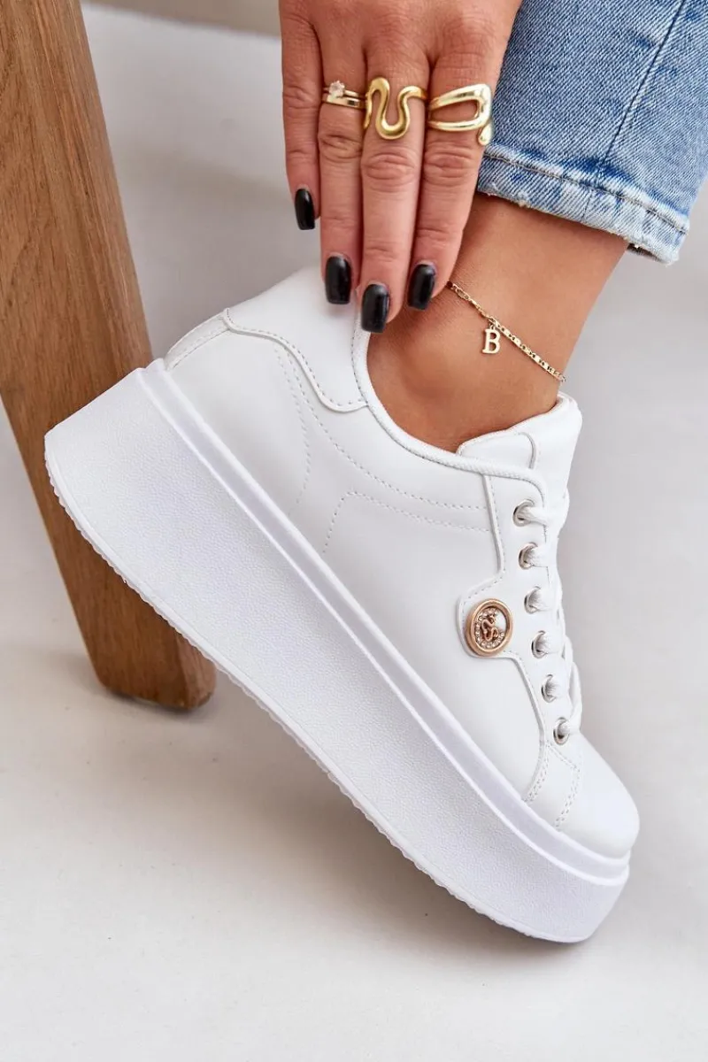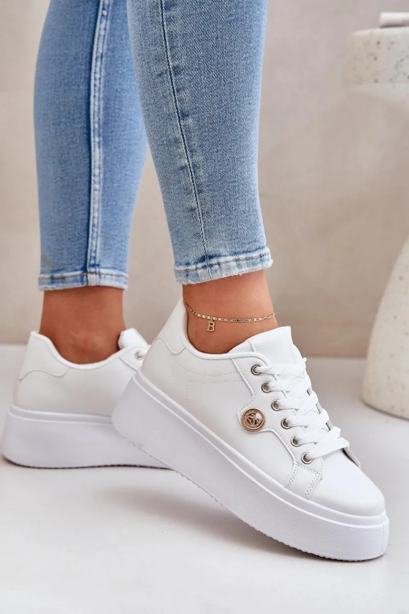 Eleganckie sneakersy z eko skóry to idealna opcja dla tych, którzy cenią sobie zarówno stylowy wygląd, jak i wygodę. Osadzenie na platformie zapewnia dodatkową wysokość. Delikatny, połyskujący akcent na boku cholewki dodaje im elegancji i unikalnego charakteru. Model ten posiada wyjmowaną wkładkę z pianki. Doskonale pasując zarówno do biurowych zestawów, jak i casualowych stylizacji. Przy wyborze rozmiaru prosimy kierować się tabelą rozmiarów.