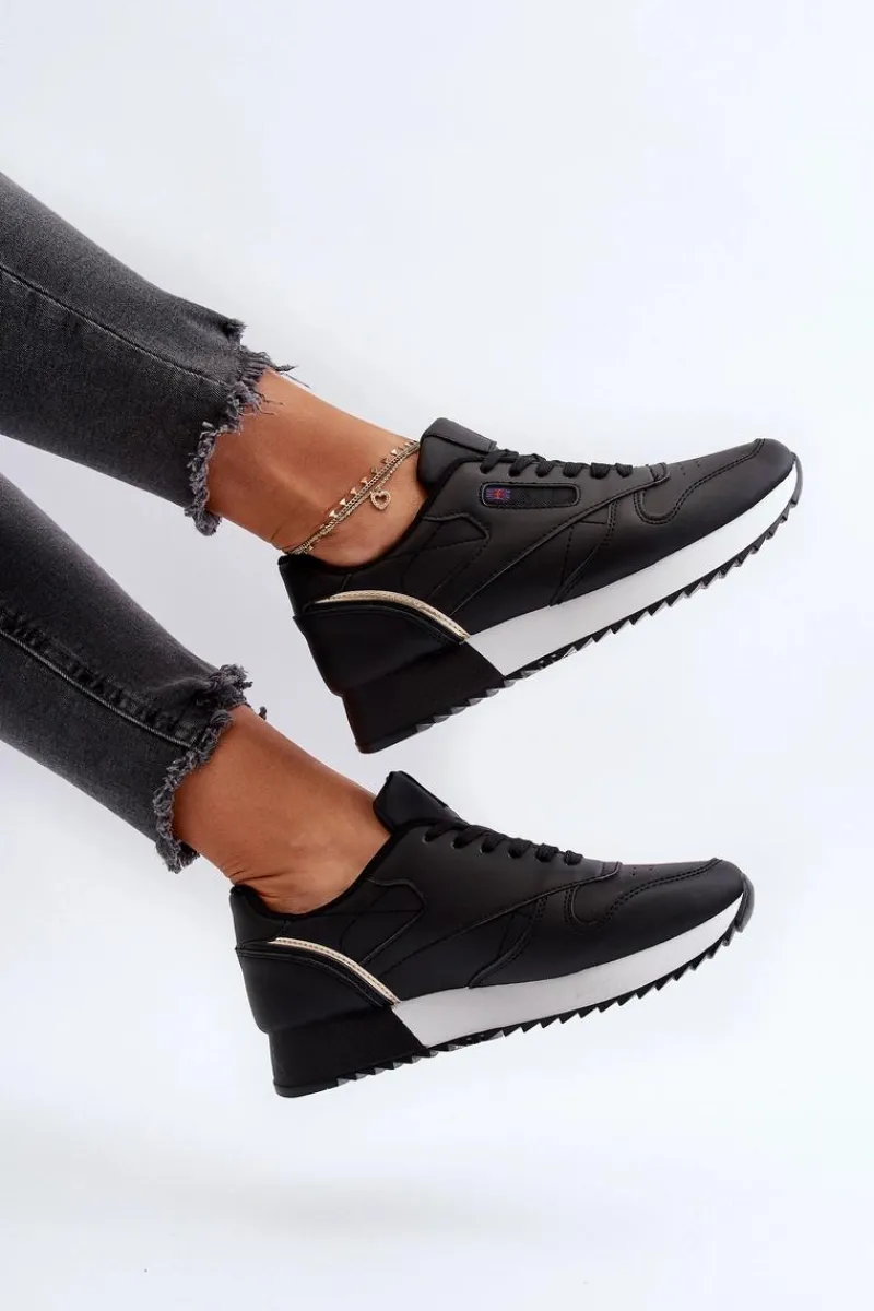 Damskie buty sportowe zostały wykonane z eko skóry. Osadzone na platformie z tworzywa sztucznego. Buty te posiadają z boku cholewki ozdobną wszywkę. Model klasycznie sznurowany pozwoli na odpowiednie dopasowanie obuwia do tęgości nogi. Ten model idealnie sprawdzi się podczas codziennych aktywności. Przy wyborze rozmiaru prosimy kierować się tabelą rozmiarów.