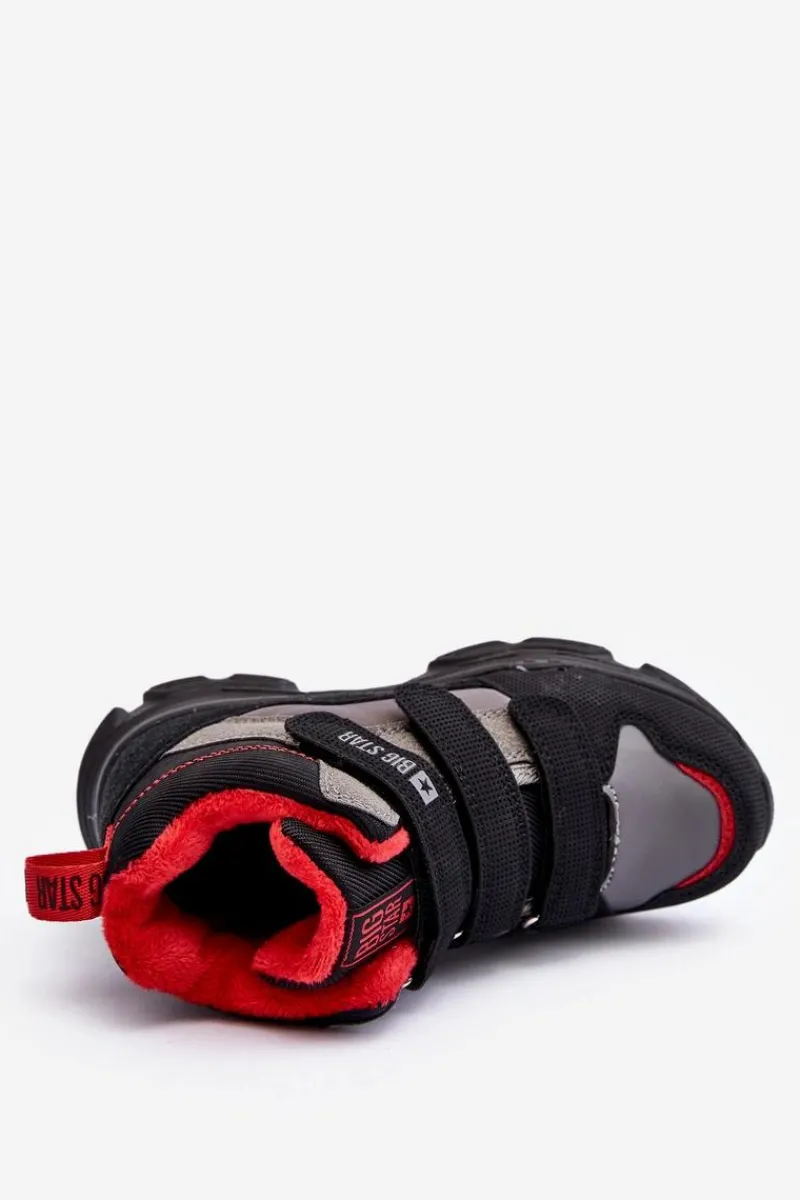 Niezwykle lekkie śniegowce od marki Big Star zostały wykonane z połączenia eko skóry i materiału tekstylnego. Ocieplane miłym w dotyku kocem obuwniczym w środku. Zapinane na rzepy. Wkładka Memory Foam System zapamiętuje kształt stopy, zapewni odpowiednie dopasowanie, absorbuje wstrząsy oraz jest odporna na odkształcenia. Struktura pianki pozwala na odparowywanie wilgoci i regulację temperatury. Przy wyborze rozmiaru prosimy kierować tabelą rozmiarów.