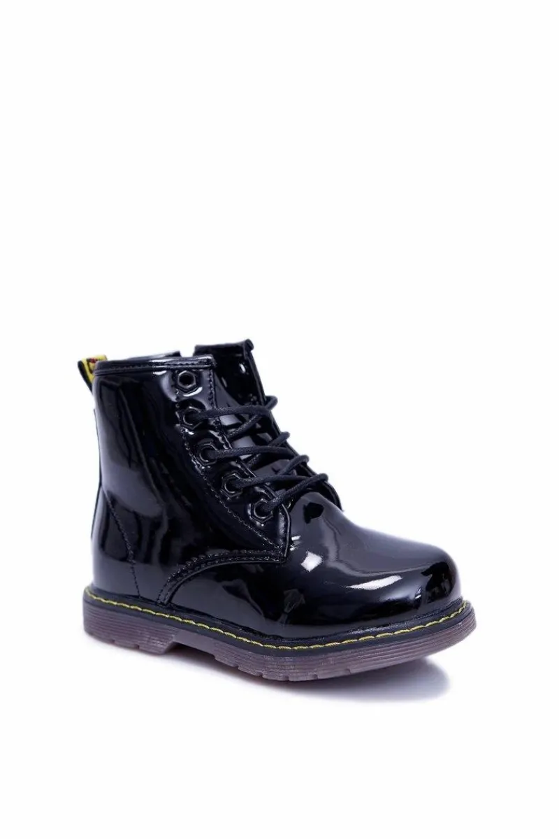 Chłopięce|Dziewczęce>Boto Dziecięce Botki Ocieplane Futerkiem Trapery Lakierowane Czarne Debi