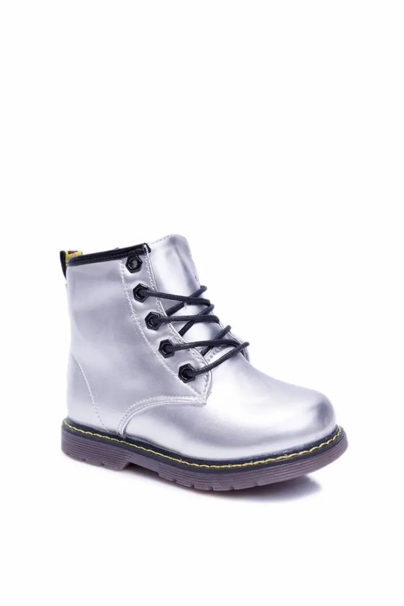 Chłopięce|Dziewczęce>Boto Dziecięce Botki Ocieplane Futerkiem Trapery Srebrne Debi