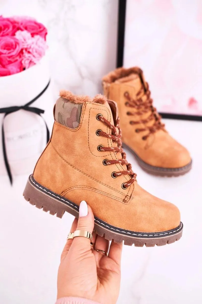Chłopięce|Dziewczęce>Boto Dziecięce Botki Traperki Ocieplone Futerkiem Camel London