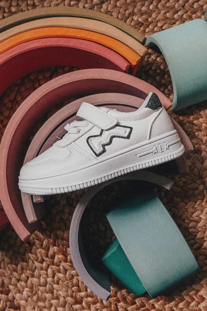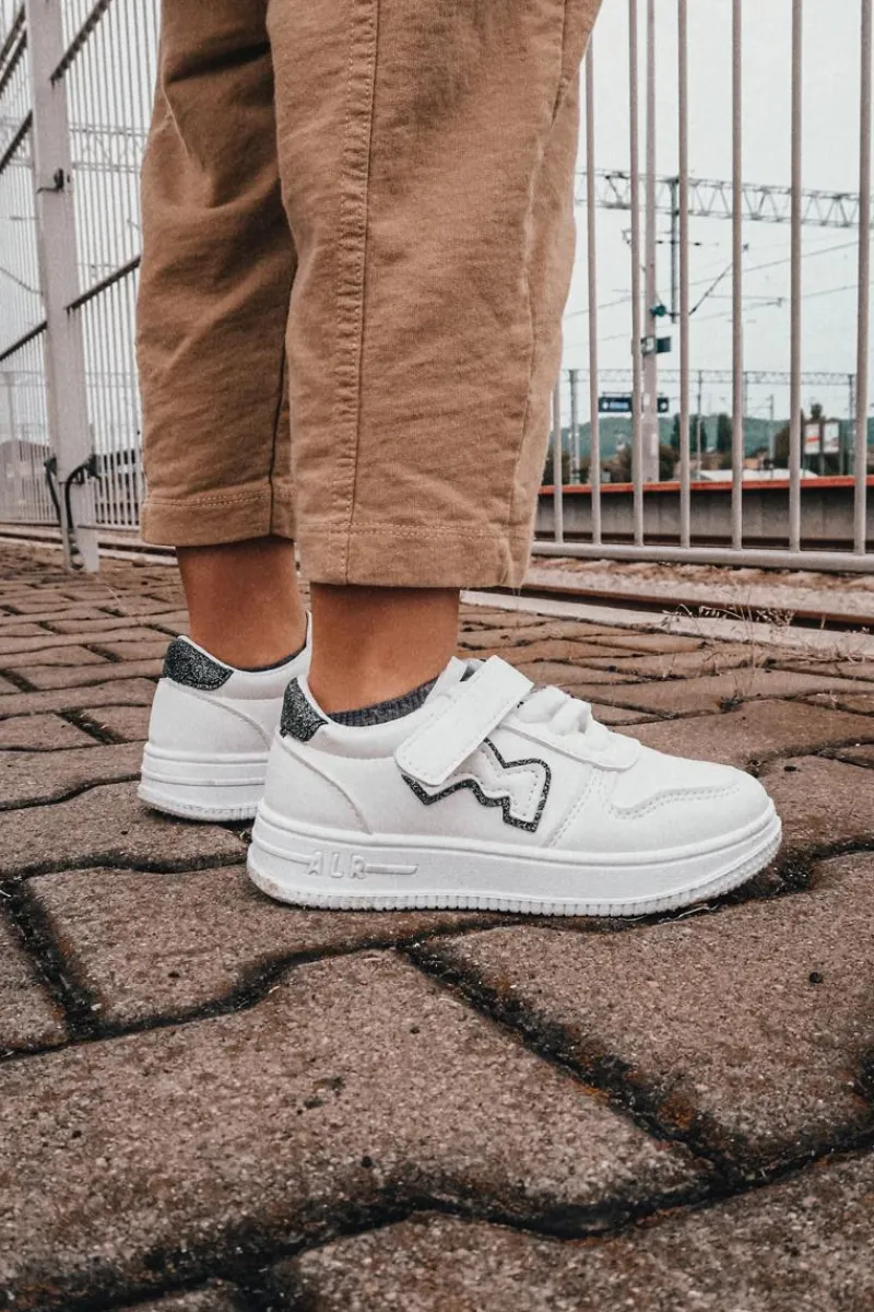 Lekkie i wygodne sportowe buty dziecięce. Wykonane są z eko skóry, posiadają miękką materiałową wkładkę. Dopasowanie do stopy zapewni zapinanie na rzep. Zapiętek przyozdobiony brokatem. Przy wyborze rozmiaru prosimy sugerować się tabelą rozmiarów.