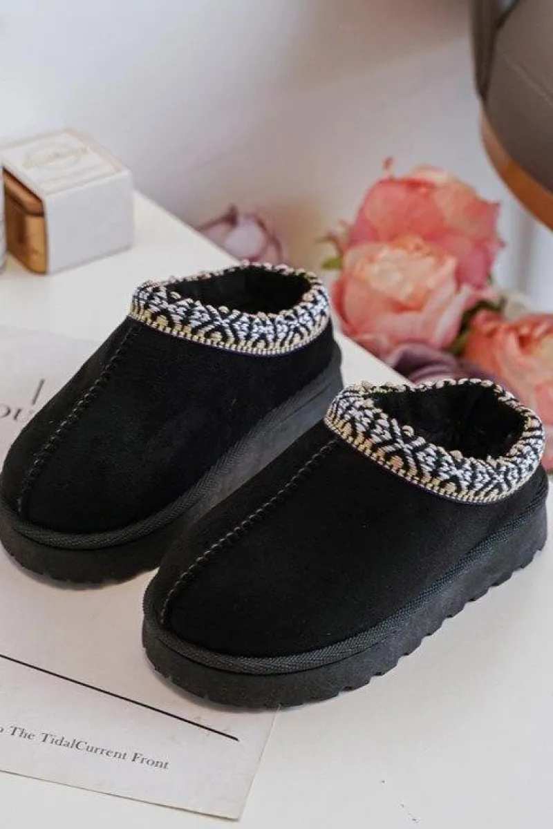 Kapcie dziecięce z modnym wzorem na cholewce. Model wsuwany. Ocieplony w środku grubym futerkiem. Podeszwa wykonana z gumowego tworzywa ochroni przed zimnym podłożem. Noski zakryte. Sprawdź także pozostałe modele kapci dostępne w naszej ofercie! Przy wyborze rozmiaru prosimy sugerować się tabelą rozmiarów.