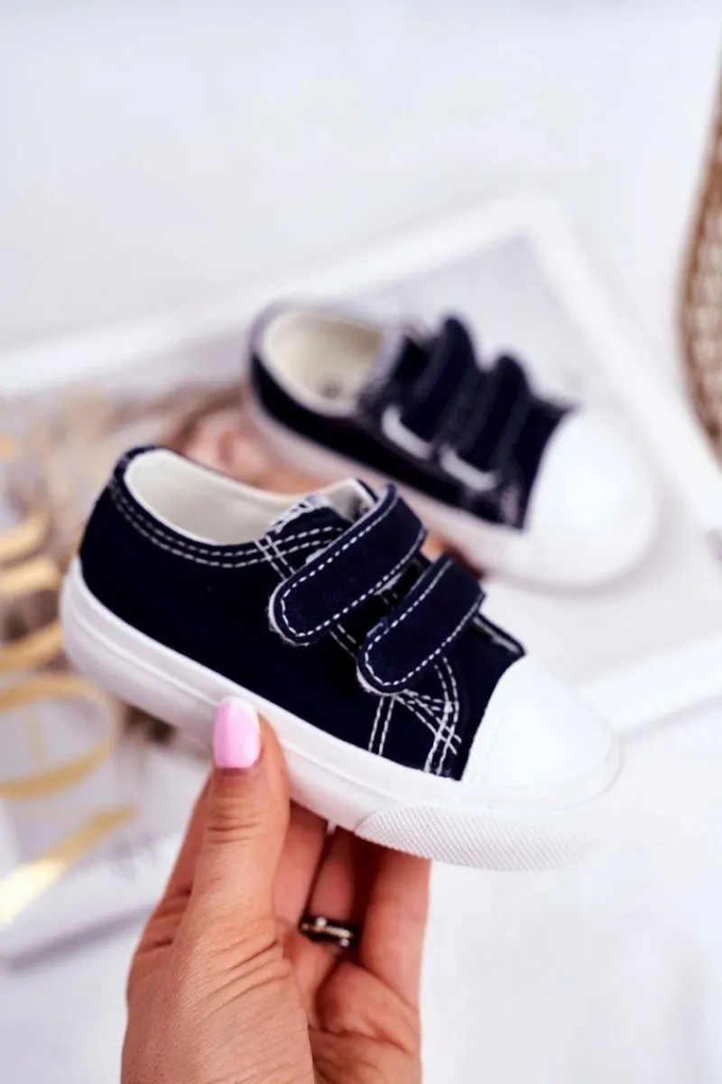 Chłopięce|Dziewczęce>Boto Tenisówki Dziecięce na Rzepy Granatowe Fanot