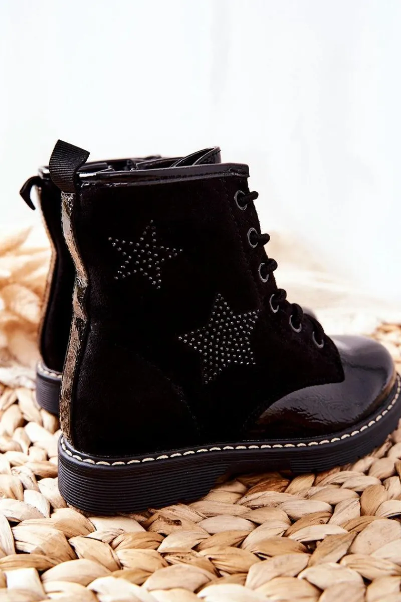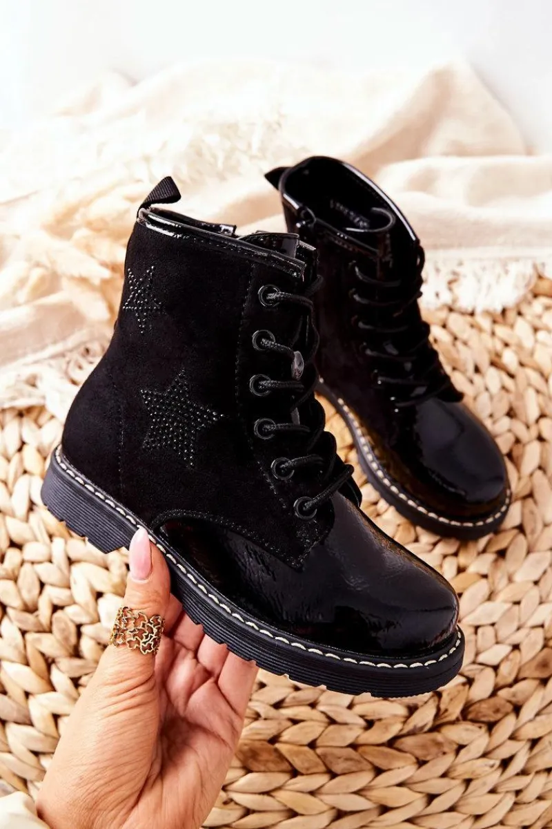 Wierzch wykonany ze skóry ekologicznej. Proste zakładanie dzięki wszytemu na boku suwakowi. Wnętrze buta pokryte jest ciepłym i miłym w dotyku kocem obuwniczym. Przy wyborze rozmiaru prosimy kierować tabelą rozmiarów.