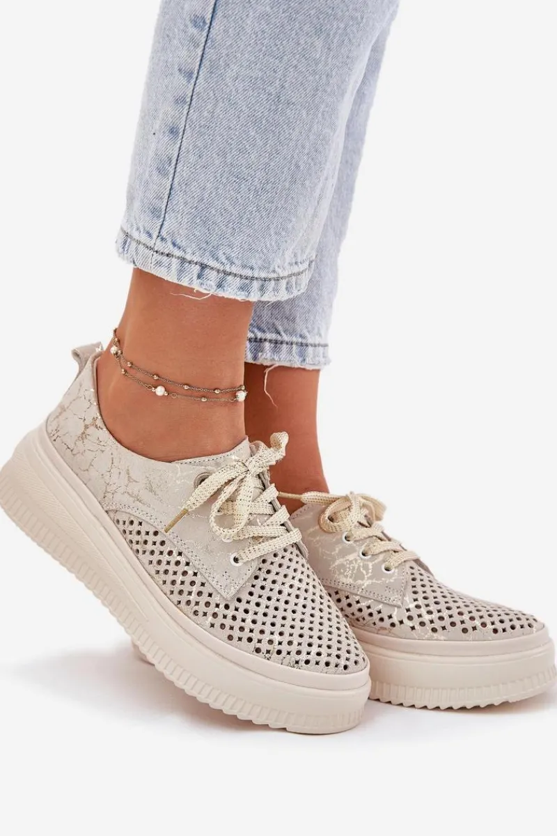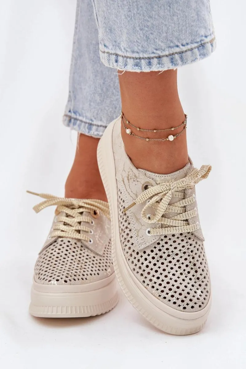 Ażurowe półbuty damskie wykonane z naturalnego zamszu to połączenie elegancji i wygody. Osadzone na platformie, oferują lekkość i stabilność, zapewniając komfort przez cały dzień. Skórzana, miękka wkładka dba o odpowiednią amortyzację stóp. Model charakteryzuje się ażurowym wzorem, który nadaje lekkości i oryginalnego stylu. Te eleganckie i stylowe półbuty będą doskonałym wyborem do codziennych, jak i bardziej formalnych stylizacji. Przy wyborze rozmiaru prosimy sugerować się tabelą rozmiarów.