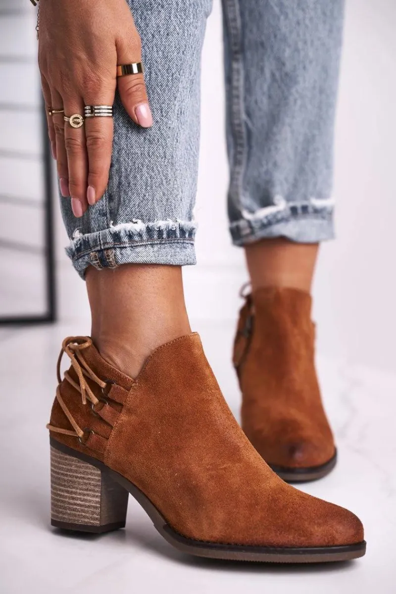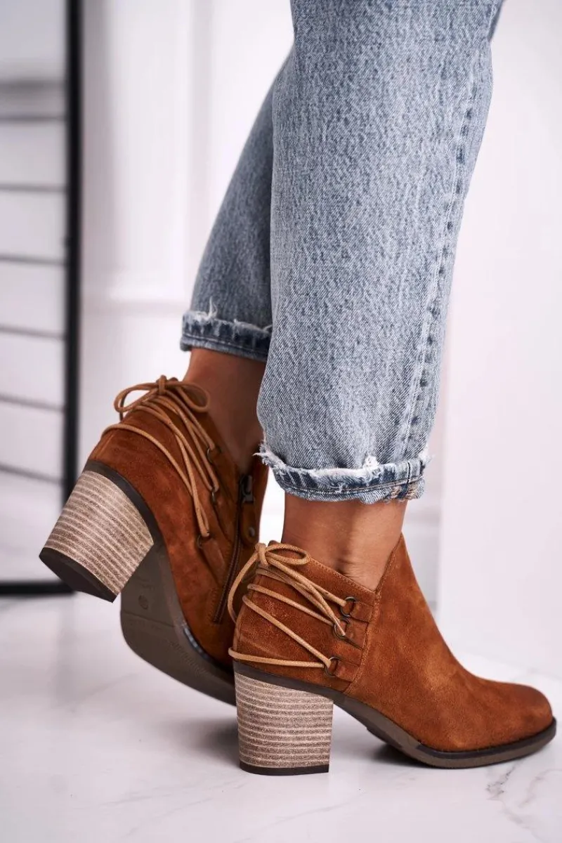 Clearance Botki Damskie Na Słupku Skóra Rude 04812-29 Damskie Botki Wiosenne|Botki Maciejka