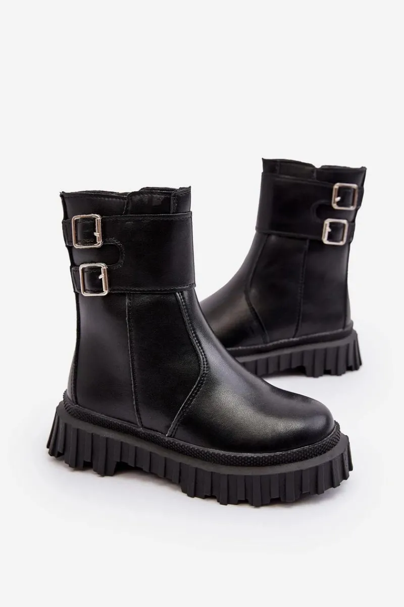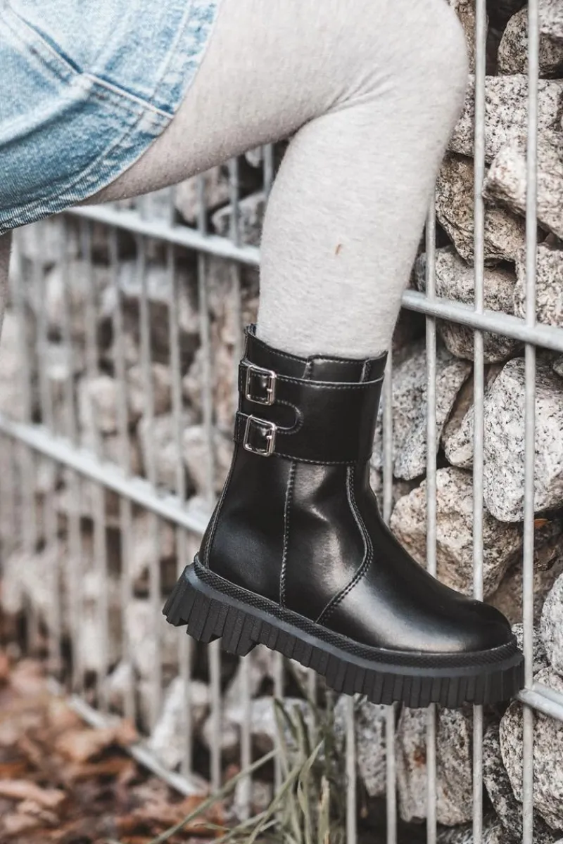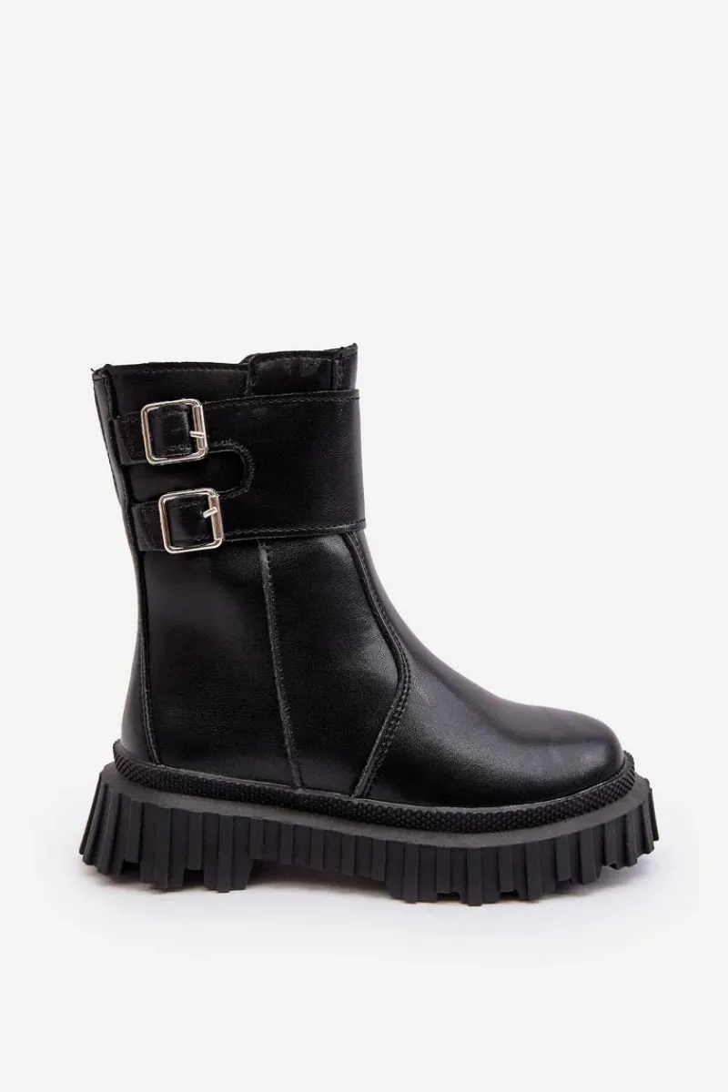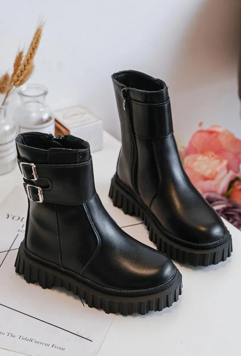 Wykonane z eko skóry botki dziecięce. Osadzone na podeszwie z gumowego tworzywa. Wewnątrz ocieplone grubym futerkiem. Model ten zapinany jest na suwak z boku. Cholewka ozdobiona paskami z klamrą. Zapiętek jest usztywniony. Koniecznie sprawdź całą naszą ofertę dziecięcych botków. Przy wyborze rozmiaru prosimy kierować tabelą rozmiarów.