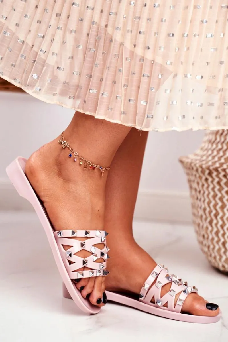 Clearance Boto Damskie Klapki Różowe Gumowe Ćwieki Patty