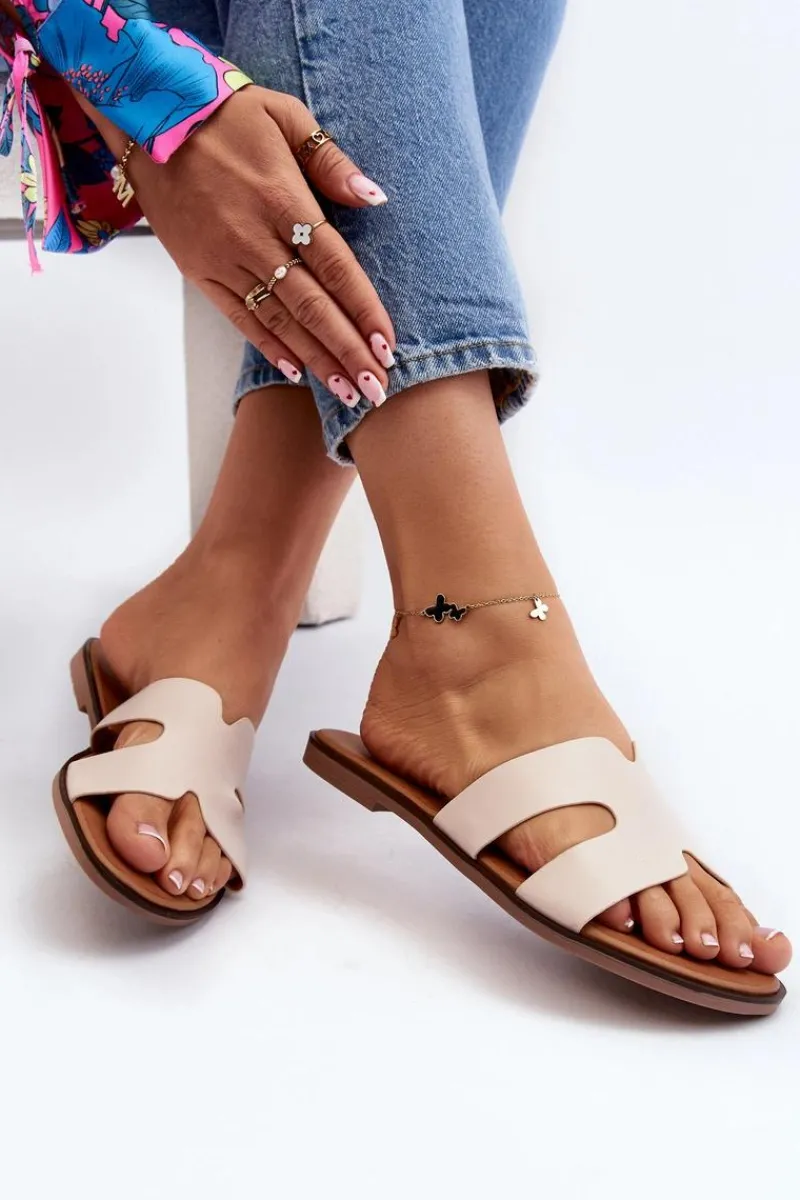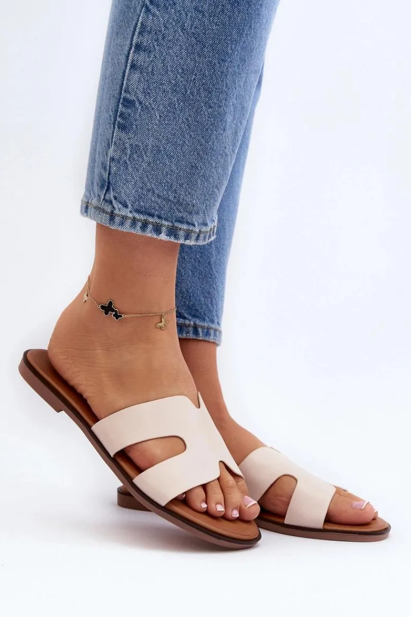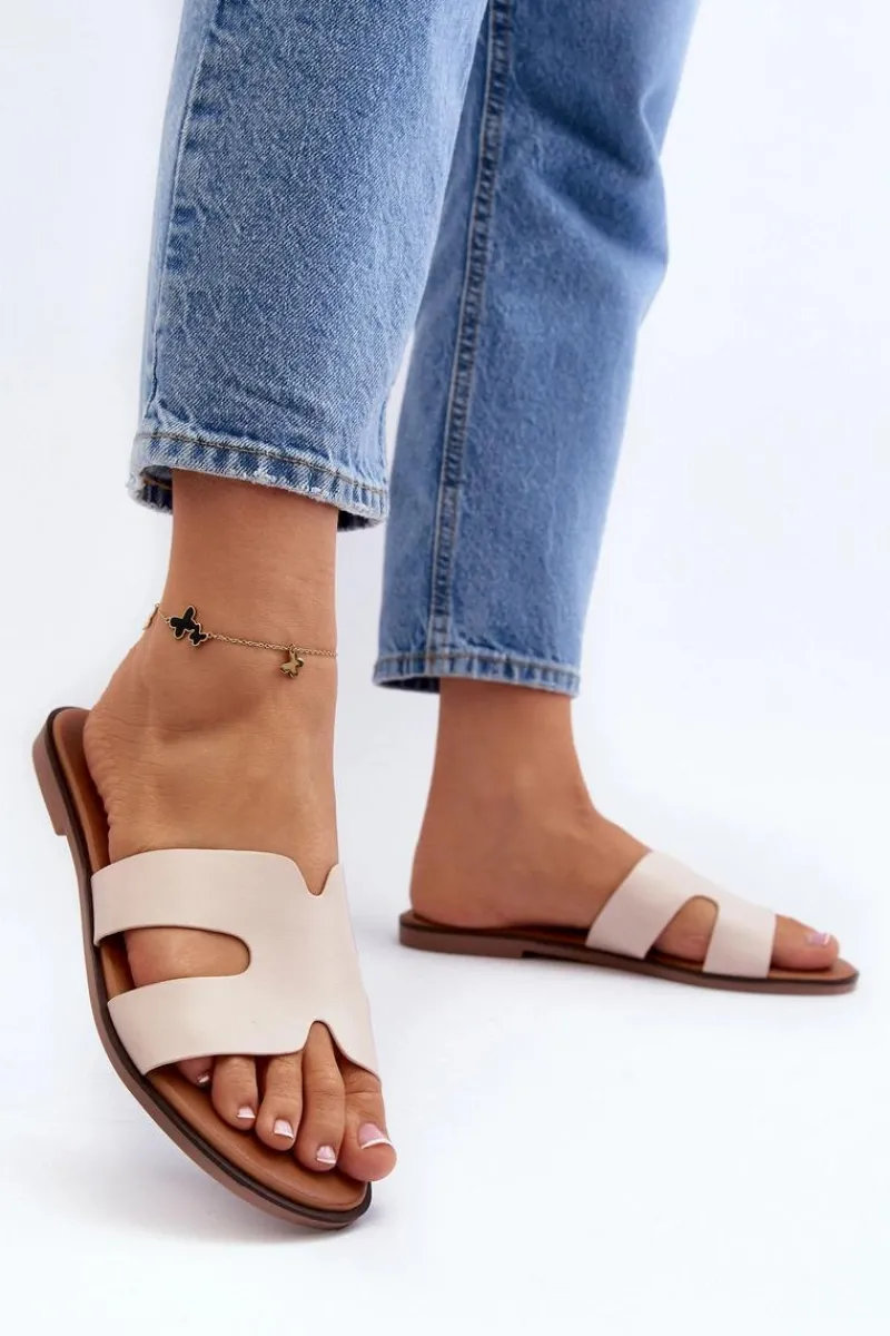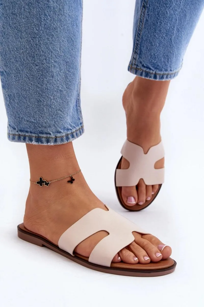 Klapki to idealna propozycja dla osób poszukujących uniwersalnego obuwia na lato. Wykonane z eko skóry. Płaski obcas gwarantuje wygodę podczas noszenia, co jest szczególnie istotne podczas letnich spacerów czy wyjść na miasto. Klasyczny fason sprawia, że świetnie pasują do różnych letnich stylizacji! Przy wyborze rozmiaru prosimy sugerować się tabelą rozmiarów.