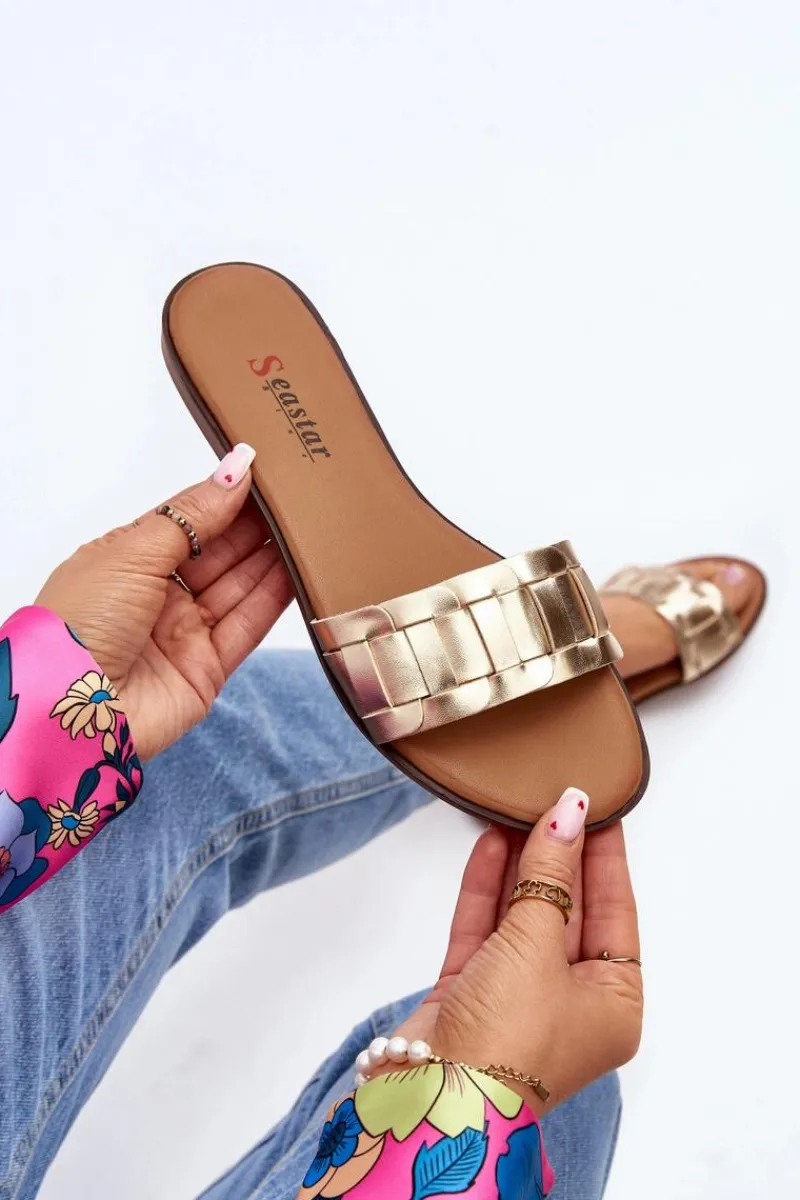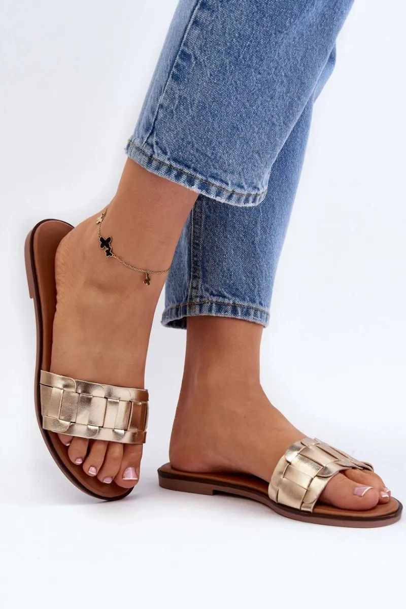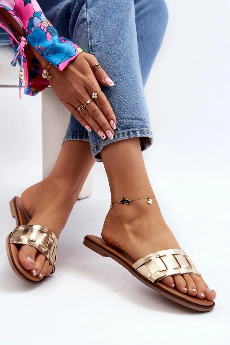 Klapki wykonane z eko skóry. Osadzone na płaskim obcasie. Klasyczny fason idealnie dopełni stylizację z letnimi sukienkami, spodniami i spódnicami. Miękka wkładka z eko skóry zapewni wygodę podczas użytkowania. Koniecznie powinnaś je mieć w swojej letniej garderobie! Przy wyborze rozmiaru prosimy sugerować się tabelą rozmiarów.
