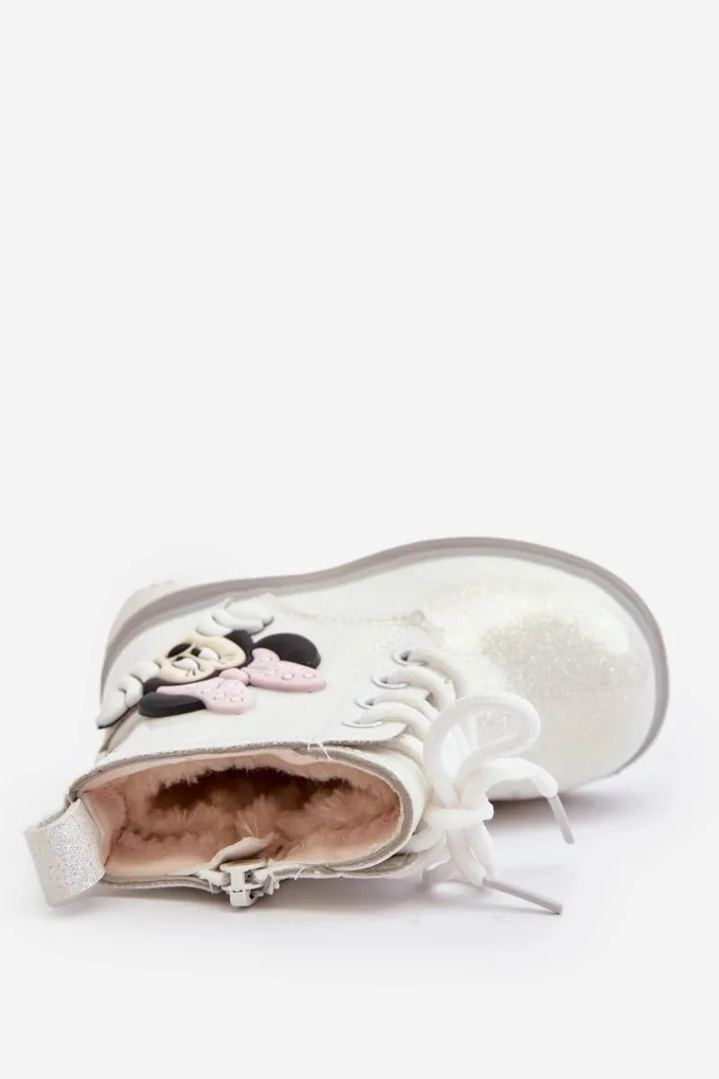 Śliczne, dziecięce botki zostały wykonane z tworzywa sztucznego. Zapinane na suwak z boku cholewki oraz dodatkowo posiadają sznurowanie. Środek ocieplony kożuchem. Cholewka ozdobiona brokatem. Twoja pociecha będzie bardzo zadowolona z tych bucików! Przy wyborze rozmiaru prosimy kierować tabelą rozmiarów.
