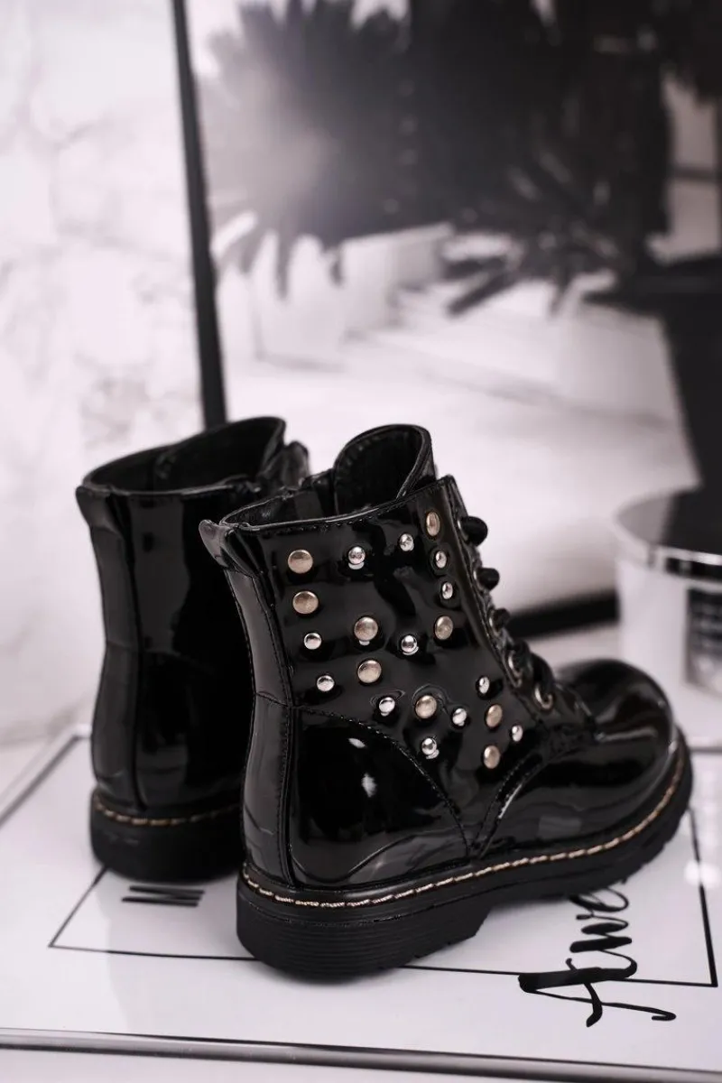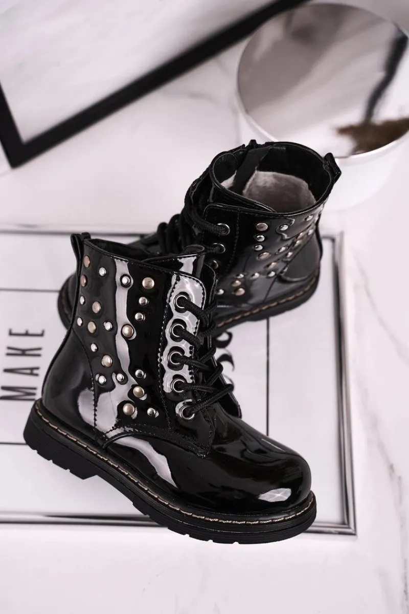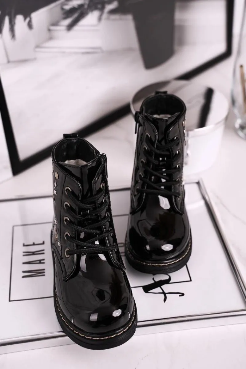 Clearance Boto Dziecięce Ocieplane Botki z Dżetami Lakierowane Czarne Fame