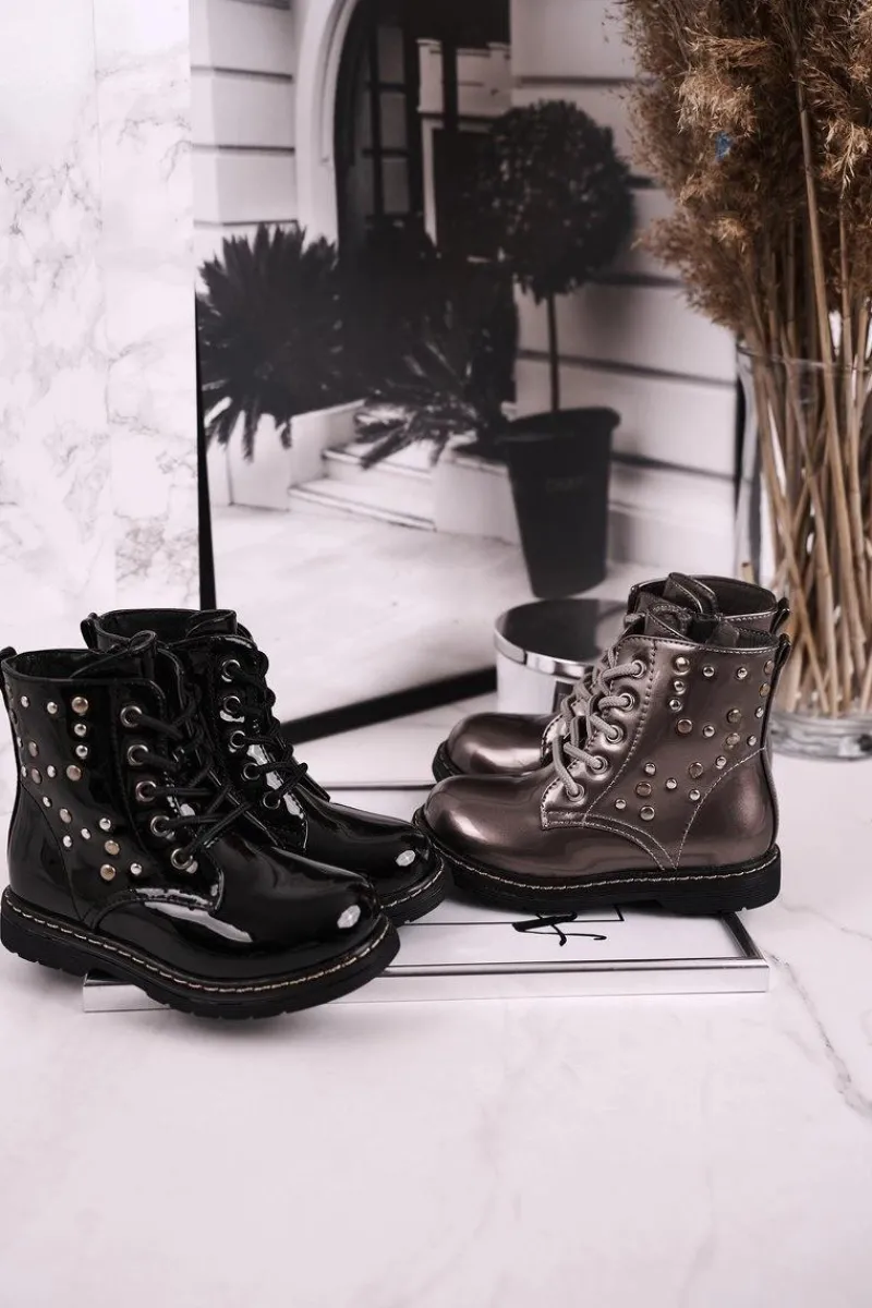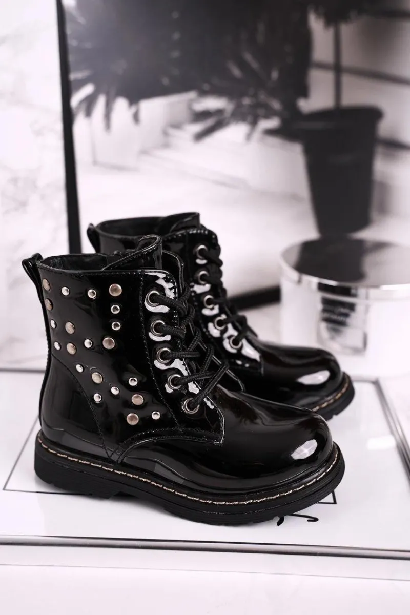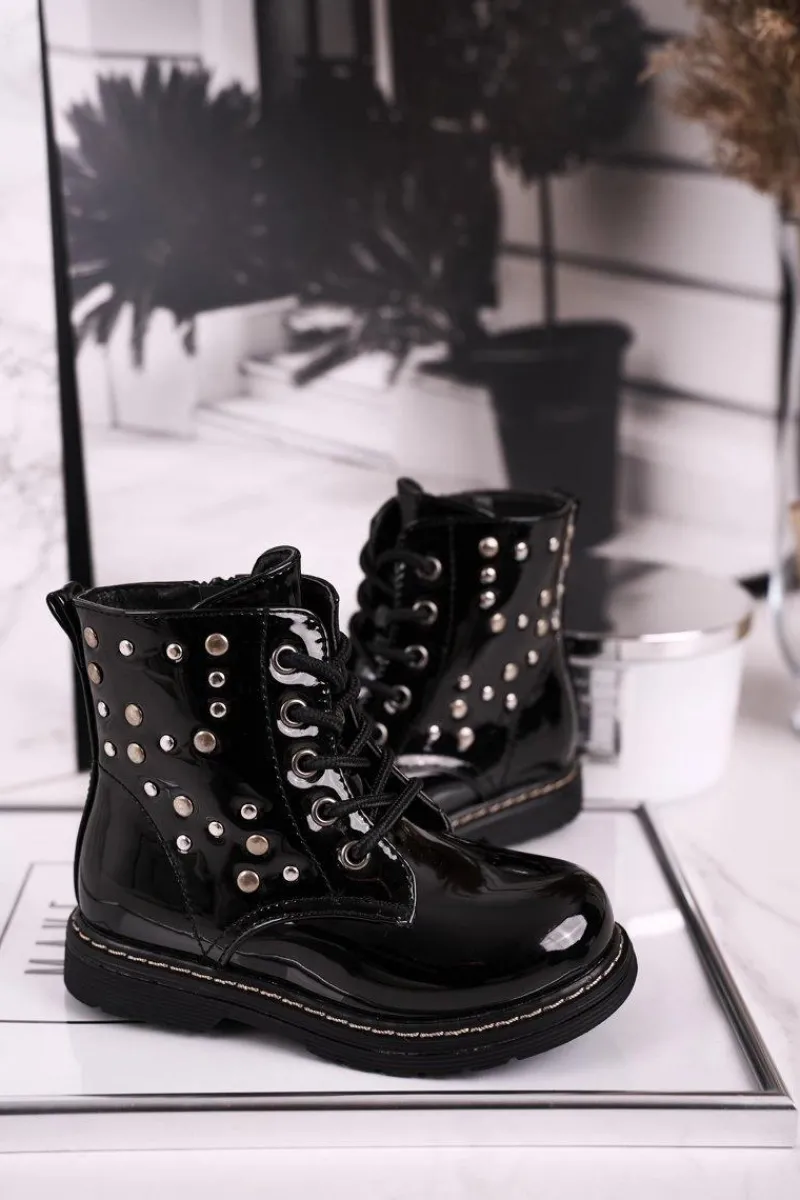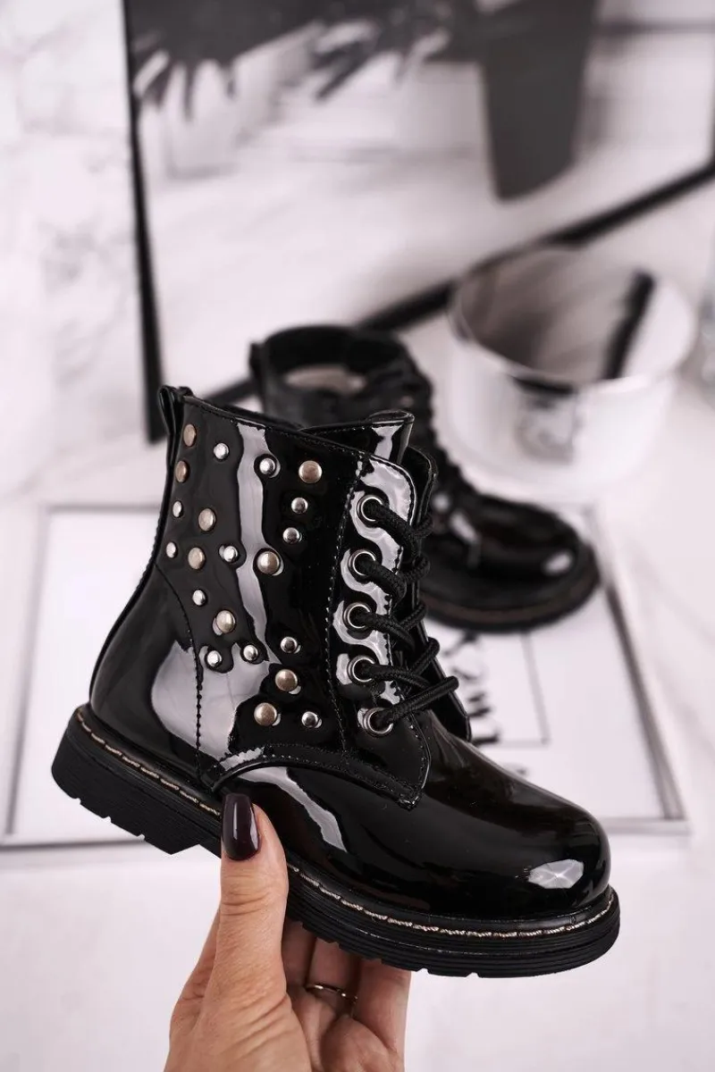 Clearance Boto Dziecięce Ocieplane Botki z Dżetami Lakierowane Czarne Fame
