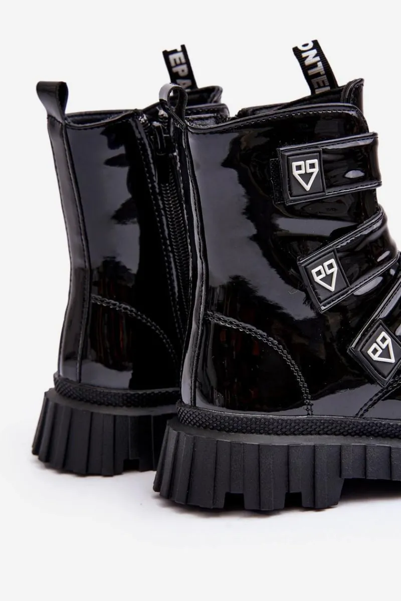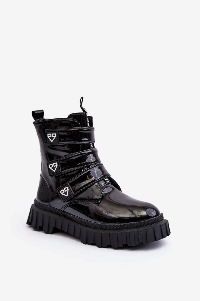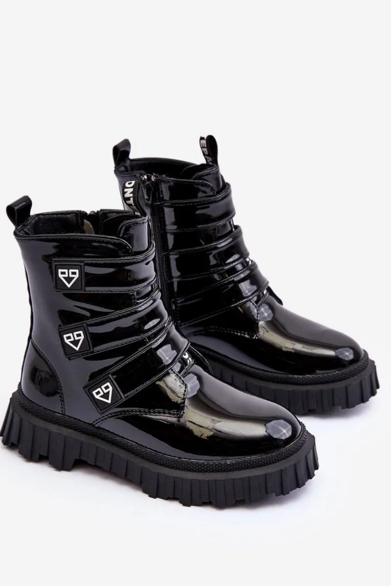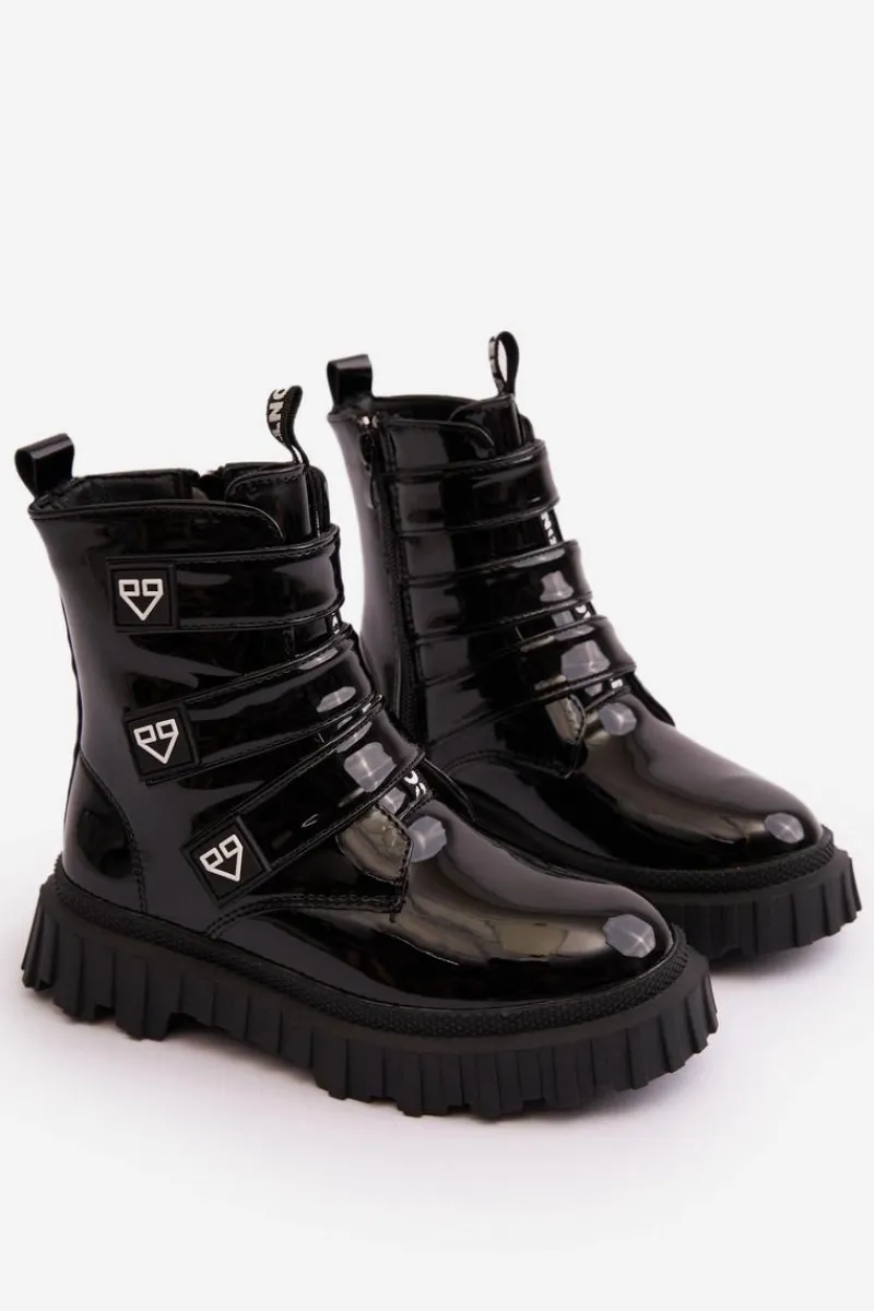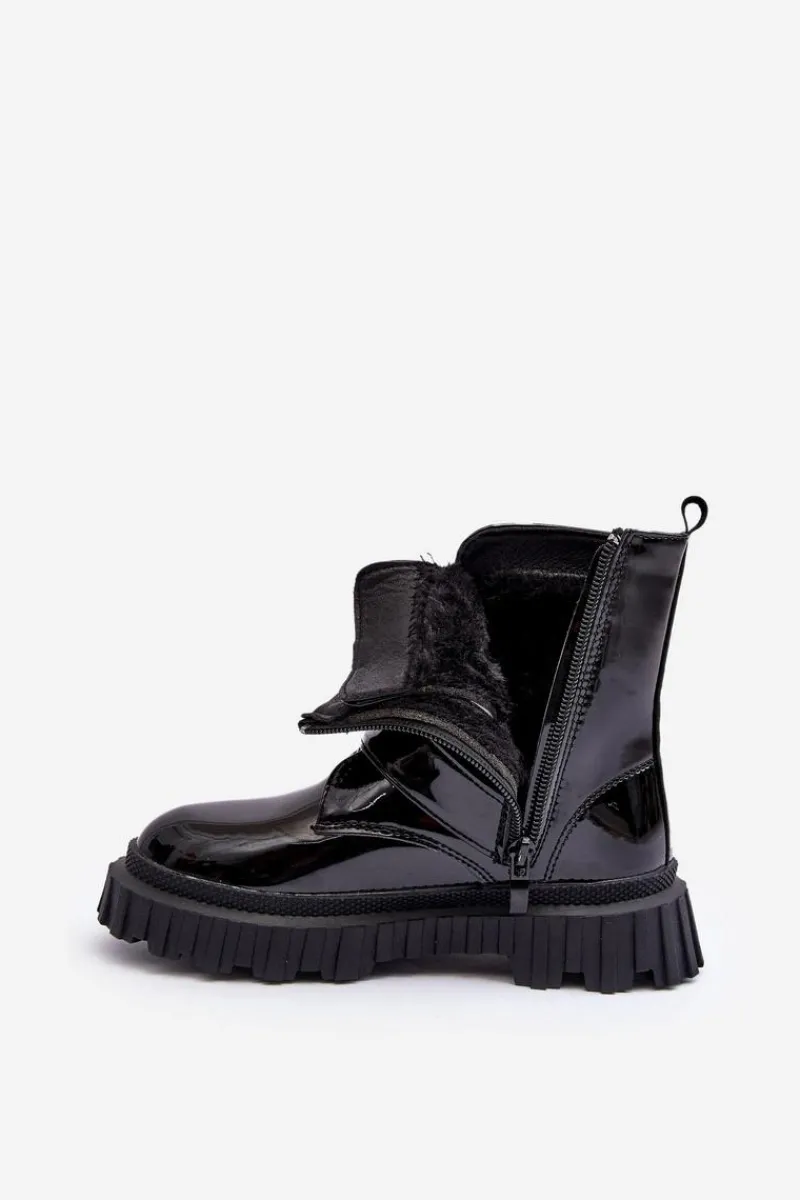 Botki dziewczęce wykonane z eko skóry. Osadzone na platformie i płaskim obcasie z gumowego tworzywa. Cholewka za kostkę. Model zapinany na suwak oraz rzepy. Noski zaokrąglone. Środek ocieplony futerkiem. Zapiętek jest usztywniony. Koniecznie sprawdź także pozostałe modele dziecięcych botków! Przy wyborze rozmiaru prosimy kierować tabelą rozmiarów.