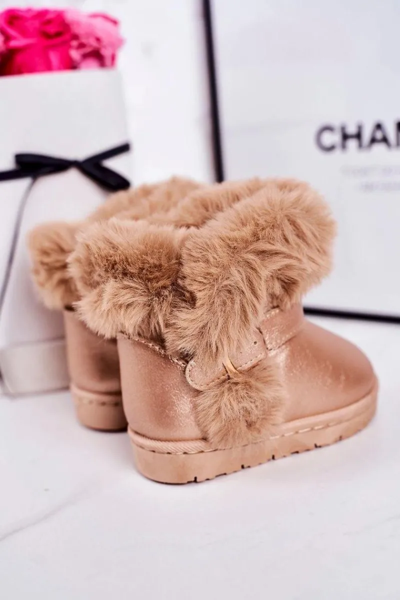 Clearance Boto Ocieplane Dziecięce Botki Śniegowce Z Futerkiem Różowe Złoto JellyBeans