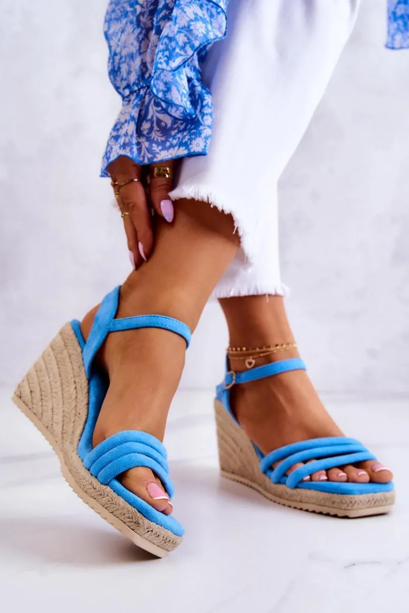Clearance Boto Zamszowe Sandałki Na Koturnie Niebieskie Louisiana