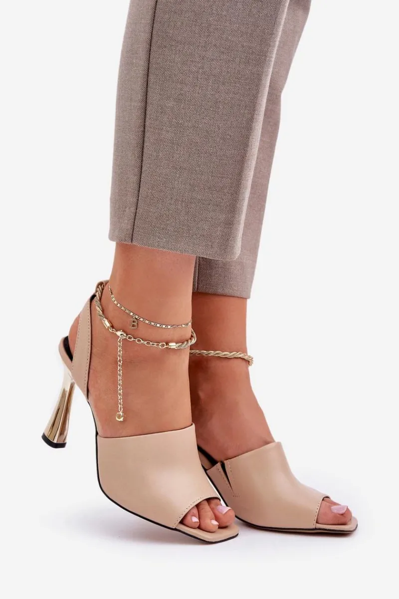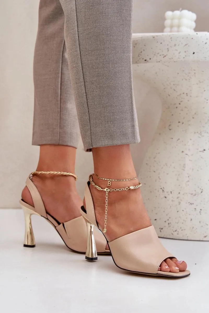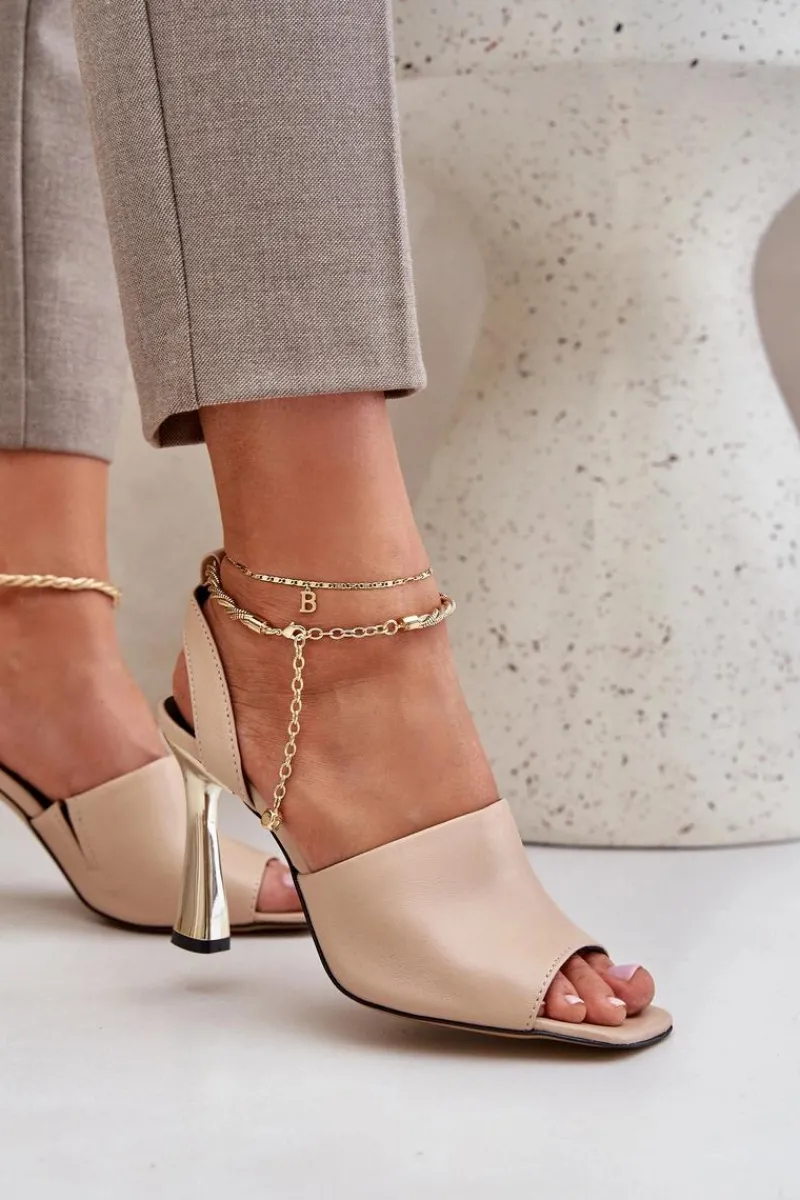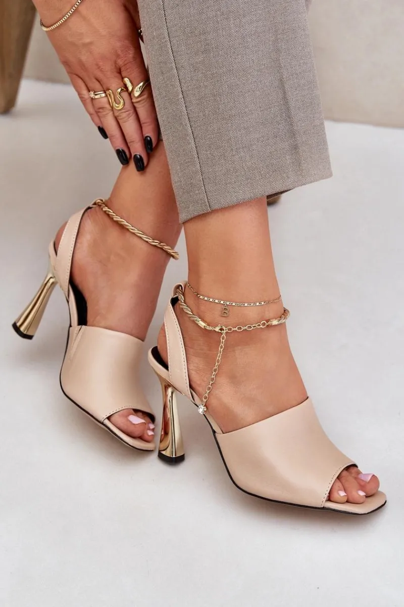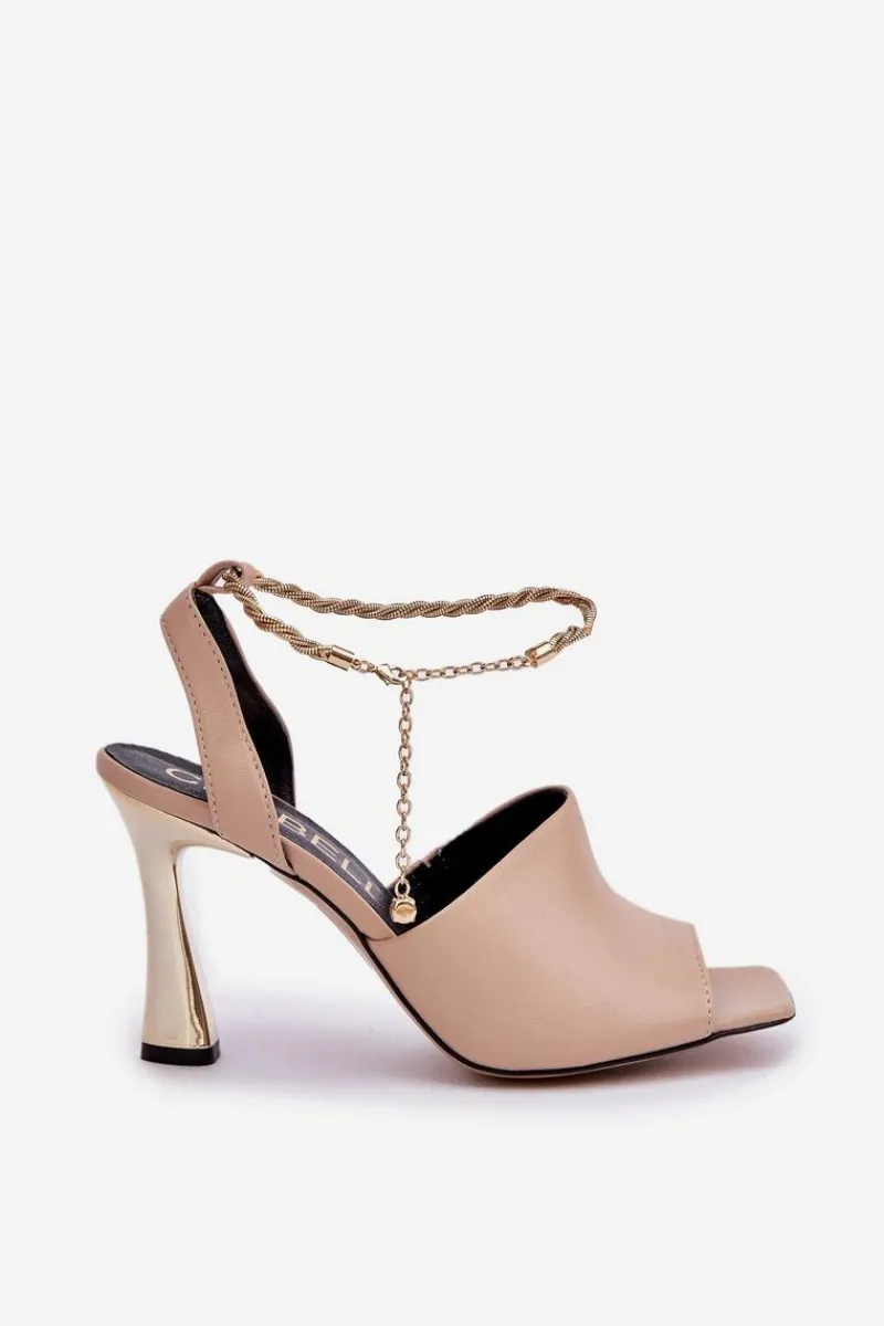 Sandały damskie od marki CheBello wykonane z wysokiej jakości naturalnej skóry. Osadzone na smukłej szpilce, z subtelną bransoletą wokół kostki, dodającą elegancji i szyku. Idealne na wyjątkowe okazje oraz wieczorne wyjścia, łączą w sobie styl, klasę i komfort noszenia. Przy wyborze rozmiaru prosimy sugerować się tabelą rozmiarów.