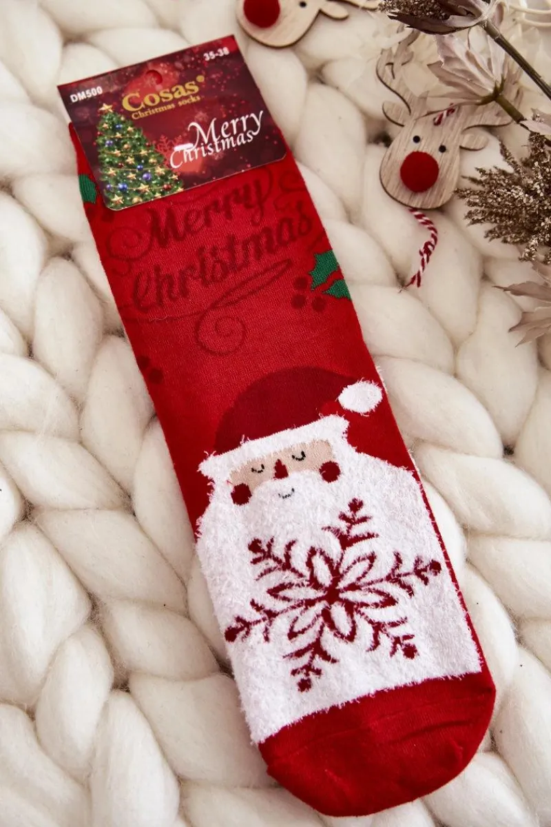 Clearance COSAS Damskie Świąteczne Skarpety Mikołaj Ze Śnieżynką Czerwone