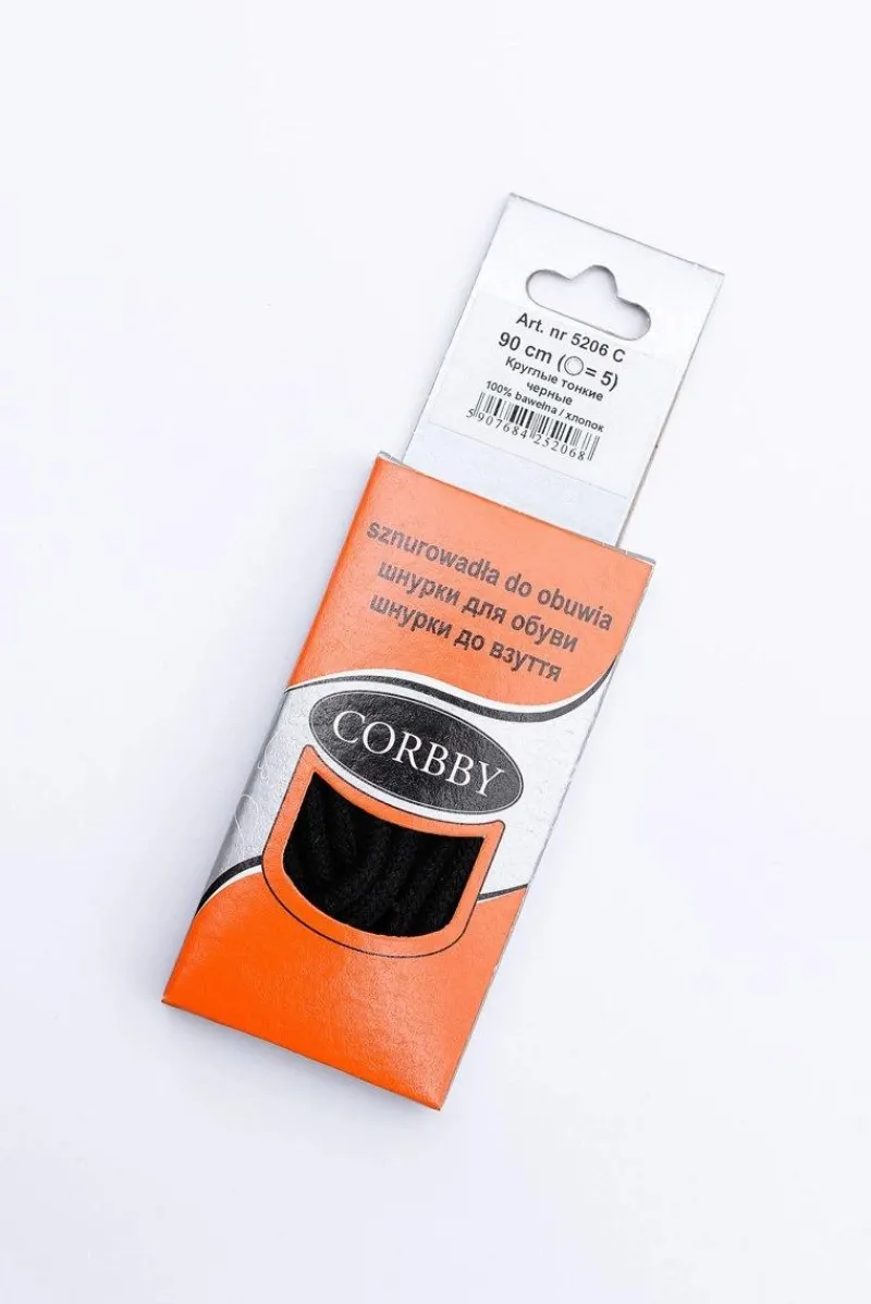Okrągłe, cienkie sznurowadła dostępne w różnych długościach i kolorach. Polskiej produkcji, firmy Corbby, wykonane w 100% z bawełny. Przeznaczone do wszelkiego rodzaju obuwia.