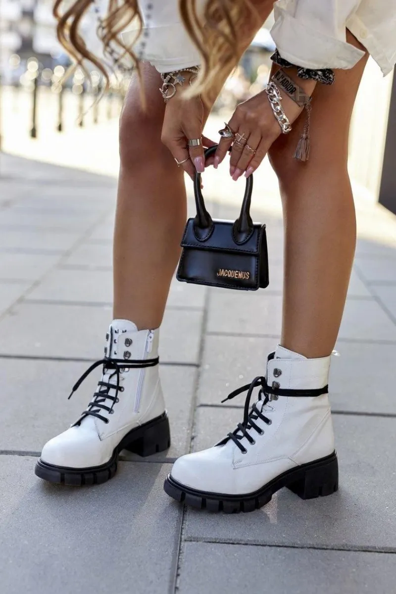 Cholewka wykonana ze skóry ekologicznej. Wnętrze ocieplane kocem obuwniczym. Stabilny płaski obcas oraz solidne sznurowanie. Suwak na boku ułatwi zakładanie. Przy wyborze rozmiaru prosimy sugerować się tabelą rozmiarów.
