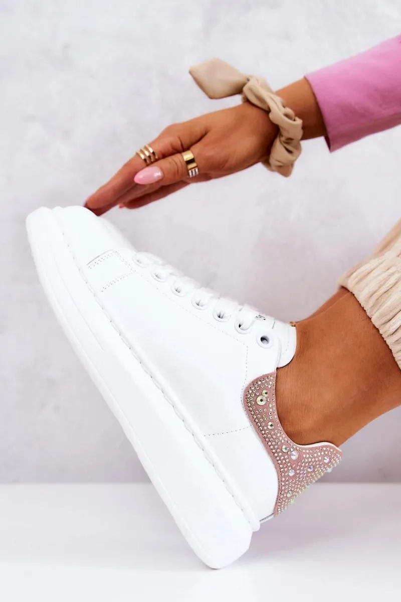 Świetne sneakersy wykonane ze skóry. Ten modny fason idealnie będzie komponował się z codziennymi stylizacjami. Klasycznie wiązany model. Miękka, eko skórzana wkładka sprawi, że będziesz czuć się w nich komfortowo przez cały dzień. Delikatna platforma uniesie Twoją sylwetkę. Przy wyborze rozmiaru prosimy sugerować się tabelą rozmiarów.