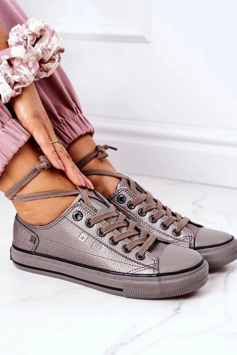 Damskie tenisówki polskiej marki BIG STAR. Klasyczna forma pasuje do wielu stylizacji. Buty dobrze dopasowują się do kształtu stopy, posiadają miękką, materiałową wkładkę. Wykonane są z wysokiej jakości eko skóry. Koniecznie sprawdź całą naszą kolekcję butów BIG STAR. Przy wyborze rozmiaru prosimy sugerować się tabelą rozmiarów.