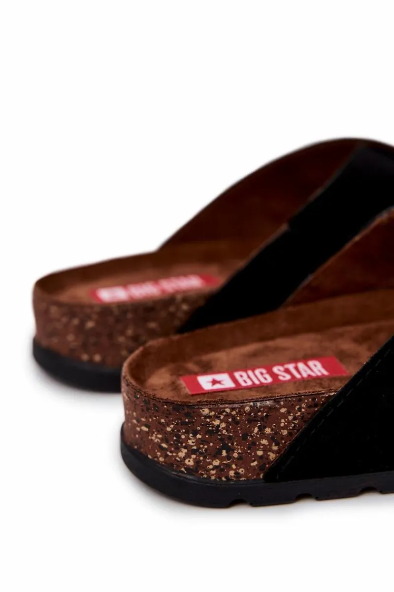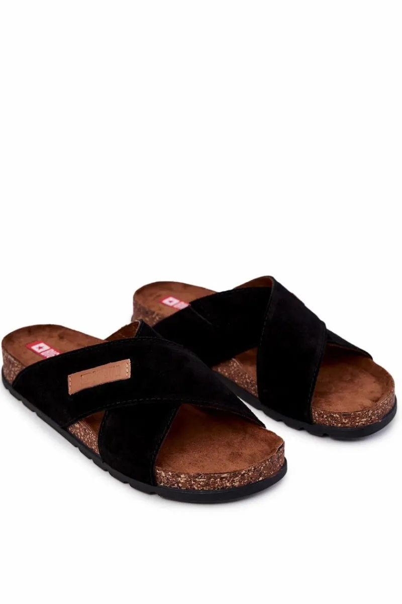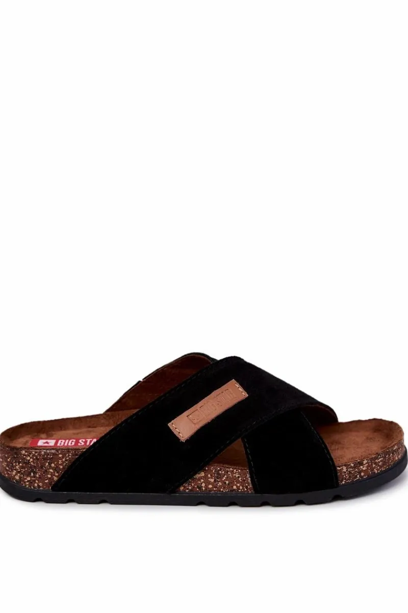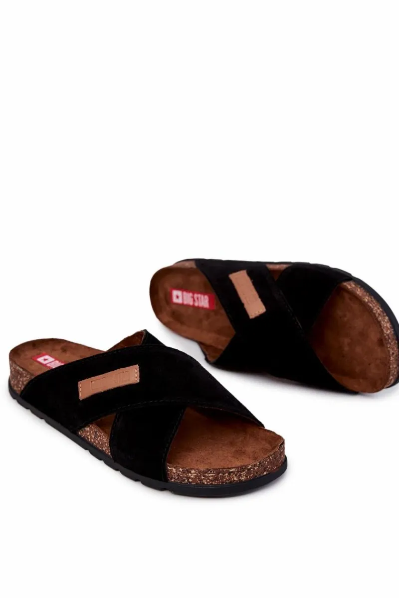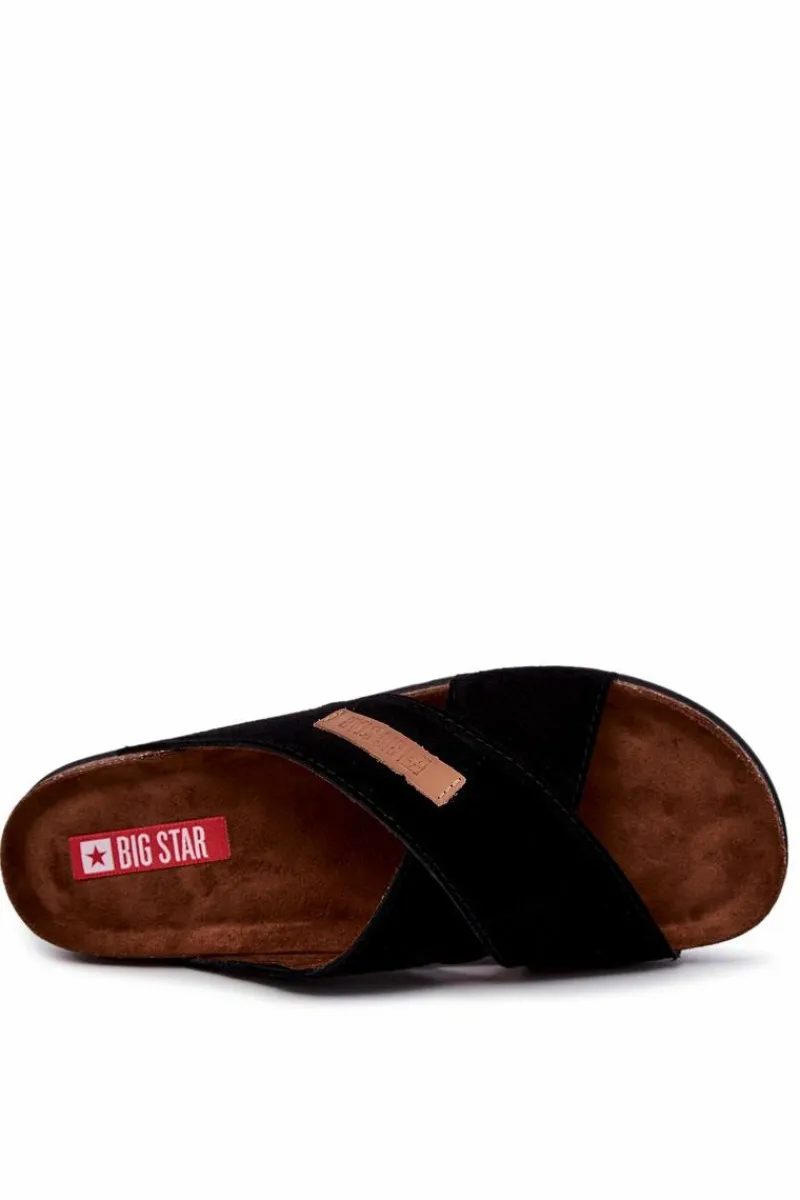 Męskie klapki od polskiej marki BIG STAR. Skrzyżowane paski wykonane są z naturalnej, zamszowej skóry. Obuwie wysokiej jakości, niezwykle komfortowe i stylowe. Ozdobne, wytłoczone logo na jednym z pasków. Wyprofilowana, miękka wkładka zapewni komfort na każdym kroku. Wykonana z zamszowej eko skóry. Podeszwa absorbuje wstrząsy na każdym kroku. Klasyczny model, idealny na co dzień. Przy wyborze rozmiaru prosimy sugerować się tabelą rozmiarów.