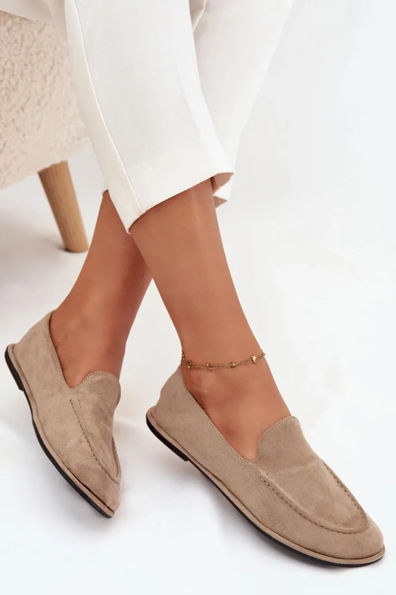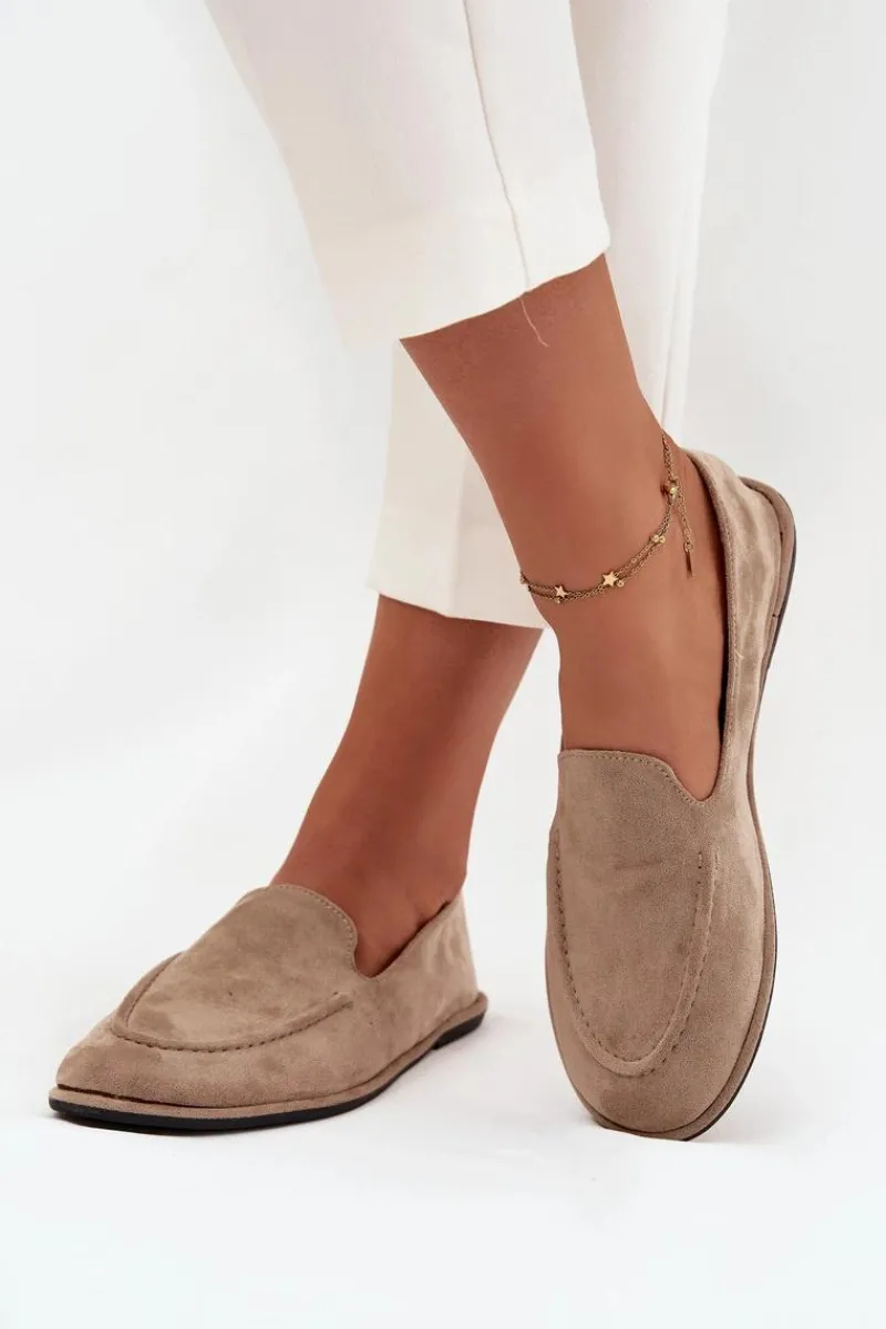 Mokasyny damskie wykonane z eko zamszu to klasyczna i wygodna propozycja na co dzień. Osadzone na płaskiej podeszwie gwarantują komfort noszenia, a zaokrąglone noski nadają im ponadczasowego charakteru. To uniwersalne obuwie, idealne na codzienne wyjścia, które świetnie sprawdzi się zarówno w casualowych, jak i nieco bardziej eleganckich stylizacjach. Przy wyborze rozmiaru prosimy sugerować się tabelą rozmiarów.