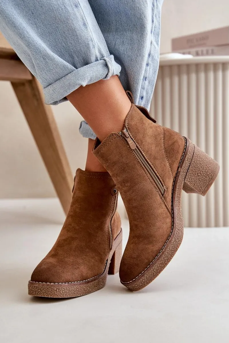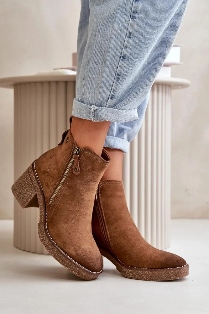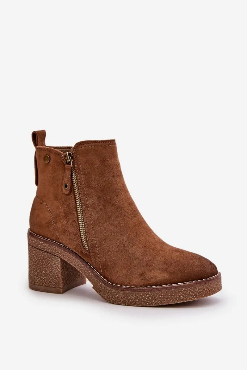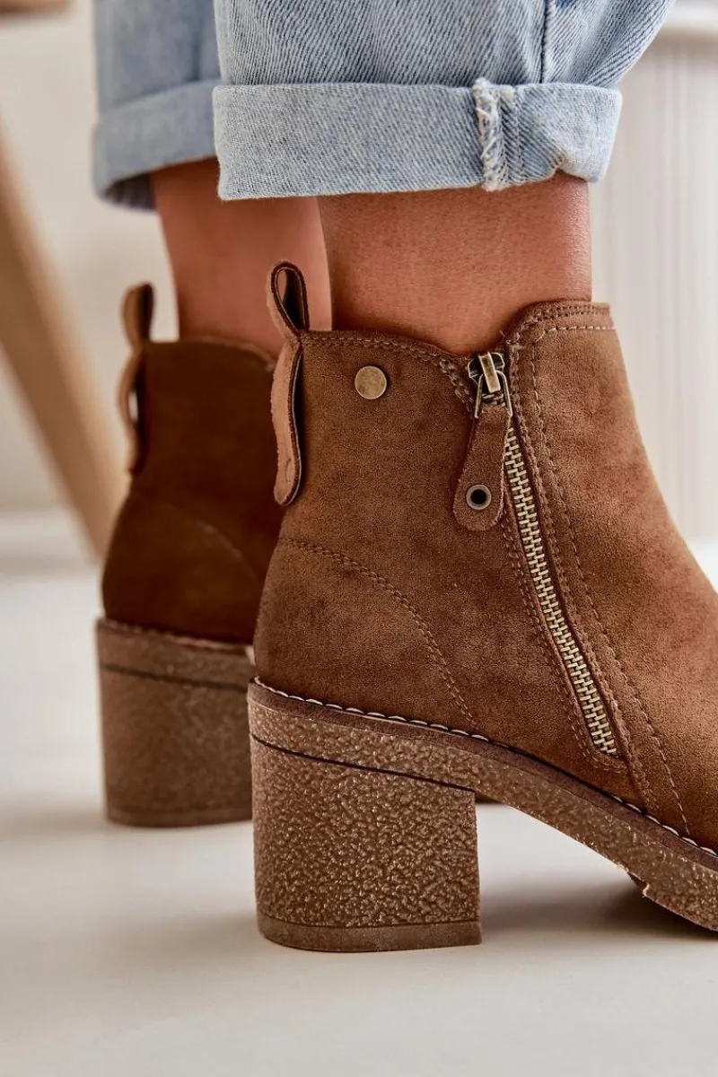 Clearance Ocieplane Botki Damskie Na Słupku Z Eko Zamszu Brązowe Velarilla Damskie Botki Ocieplane|Brązowe I Beżowe Botki