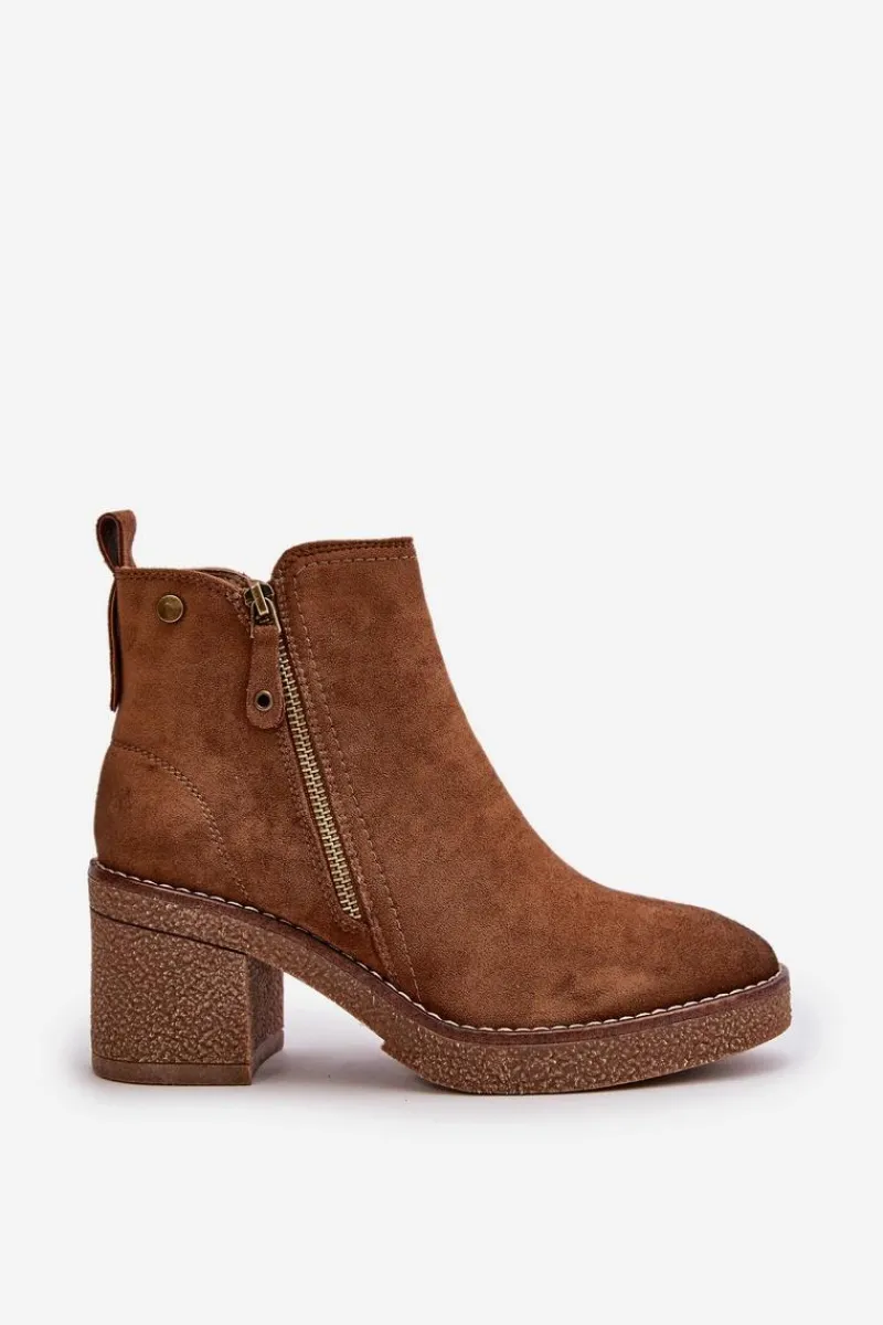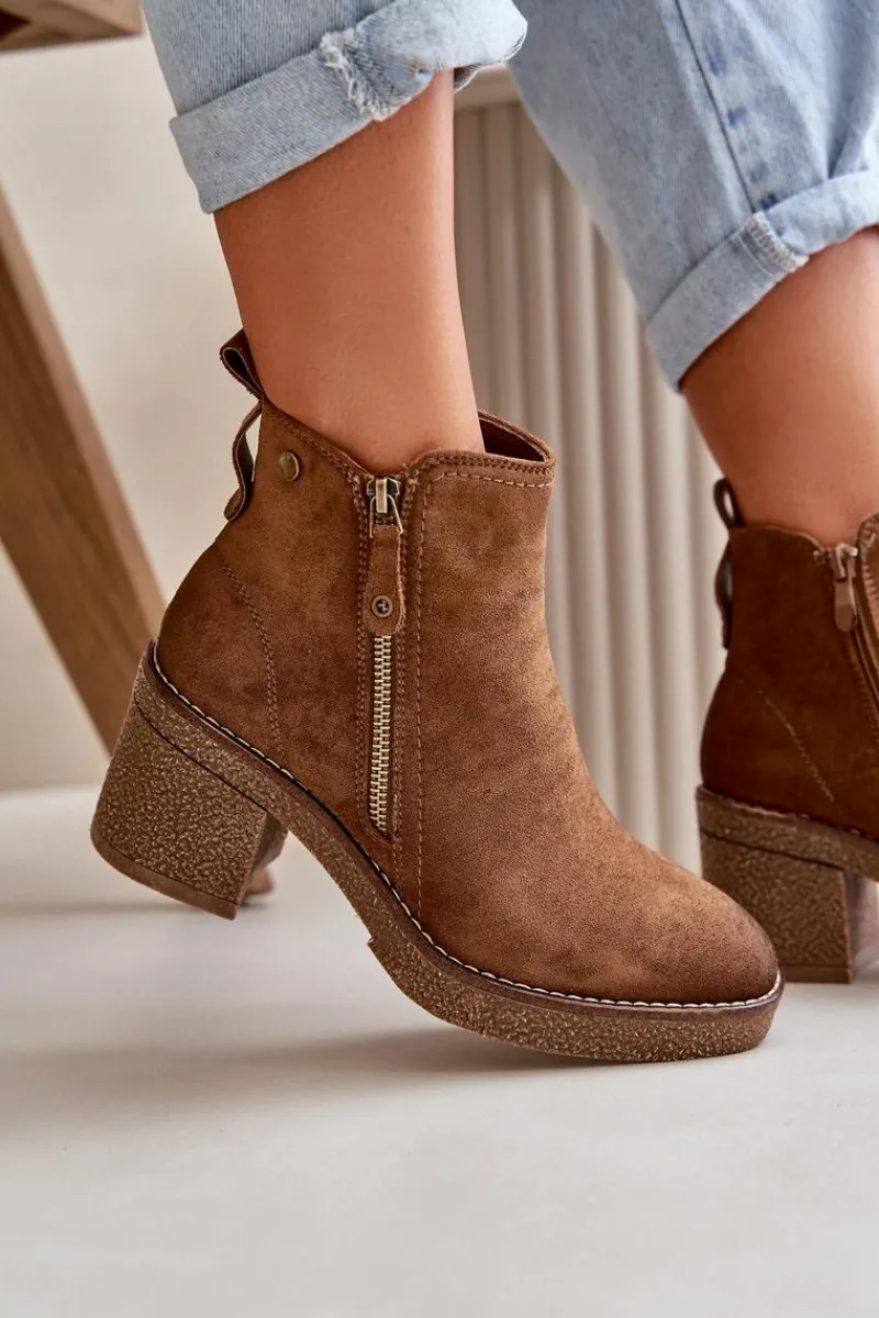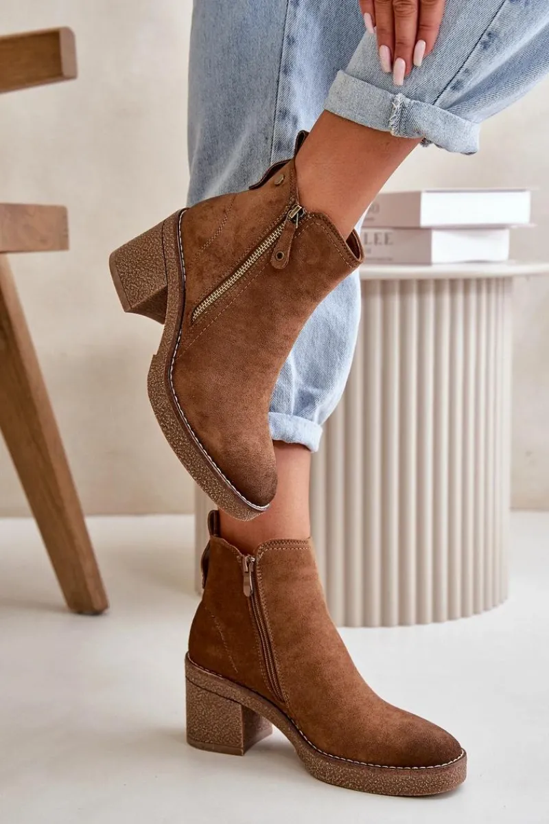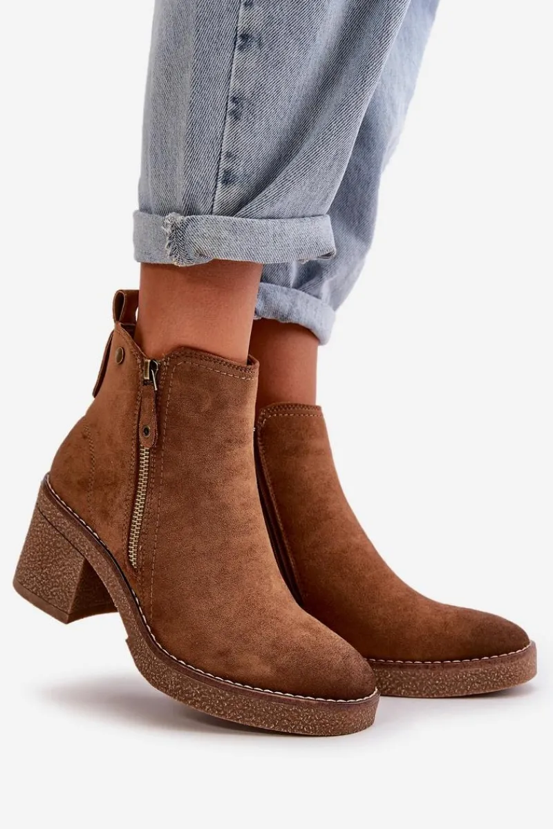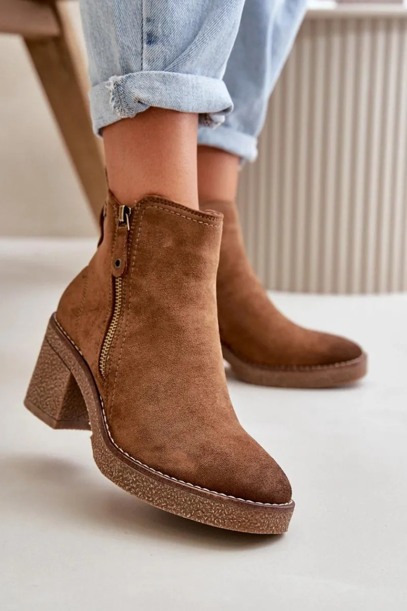 Clearance Ocieplane Botki Damskie Na Słupku Z Eko Zamszu Brązowe Velarilla Damskie Botki Ocieplane|Brązowe I Beżowe Botki