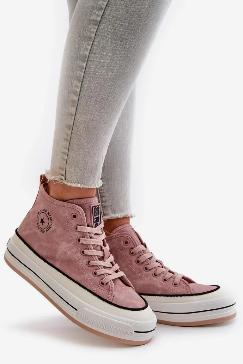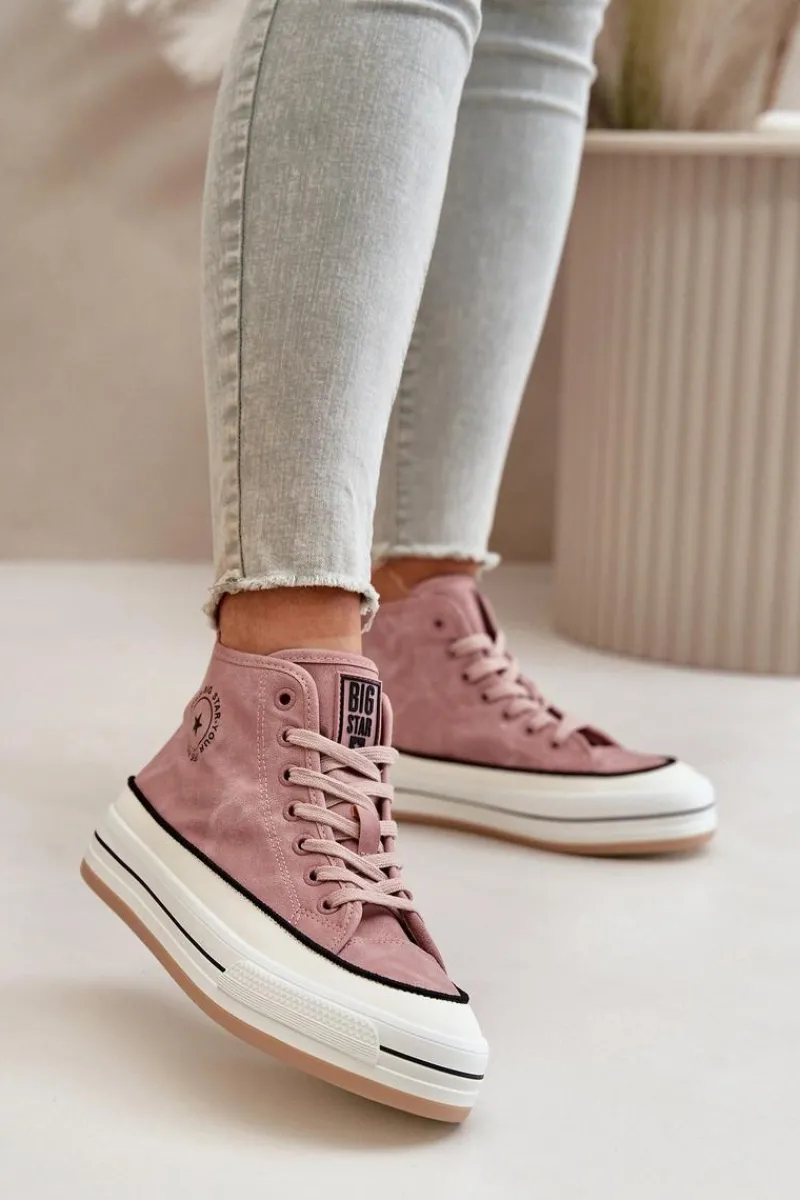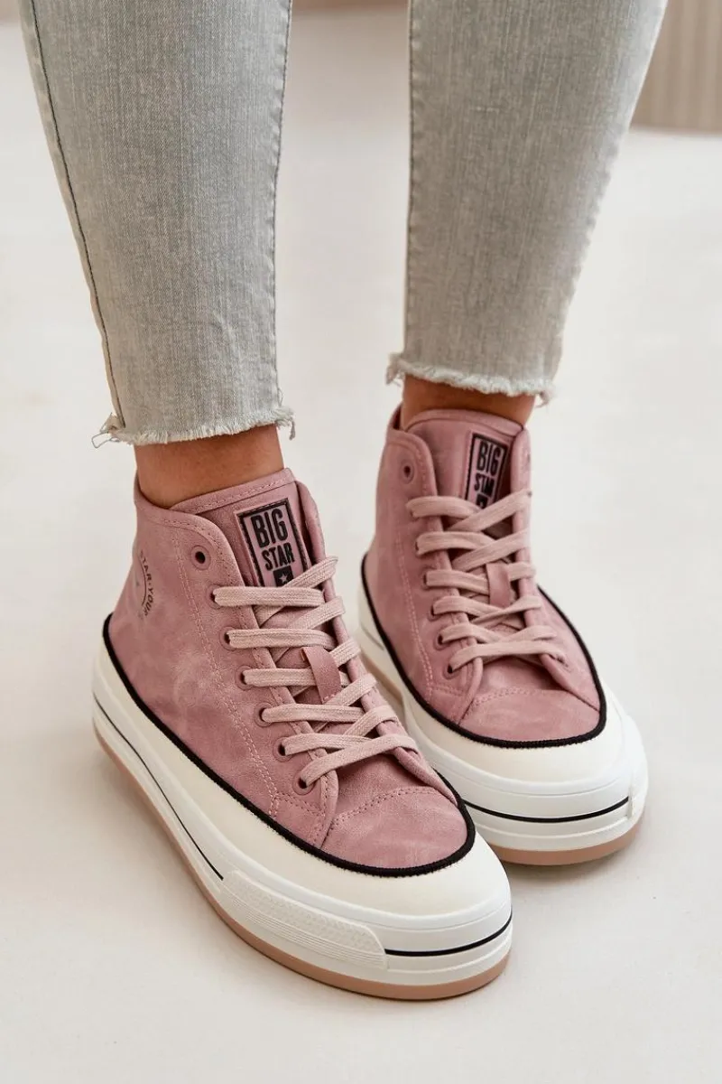 Damskie trampki od marki Big Star. Wykonane z wysokiej jakości materiałów, gwarantują wygodę i komfort noszenia przez cały dzień. Ich kolor sprawia, że łatwo dopasują się do różnych stylizacji i będą odpowiednie zarówno na co dzień, jak i na bardziej formalne okazje. Trampki posiadają wygodną wkładkę, która zapewnia dodatkowy komfort podczas chodzenia. Solidna podeszwa z gumy gwarantuje dobrą przyczepność na różnego rodzaju powierzchniach. Model ocieplany miłym w dotyku kocem obuwniczym. Doskonałe na sezon jesienno-zimowy! Przy wyborze rozmiaru prosimy sugerować się tabelą rozmiarów.