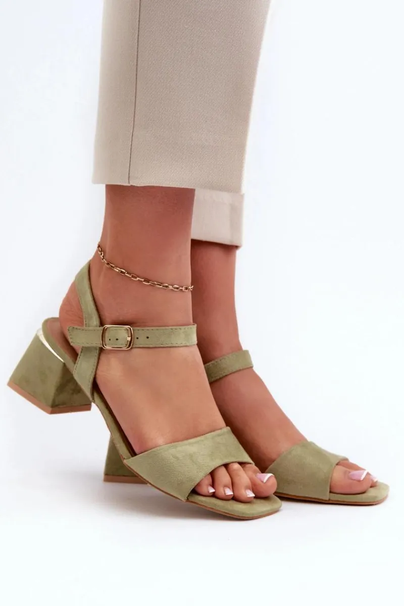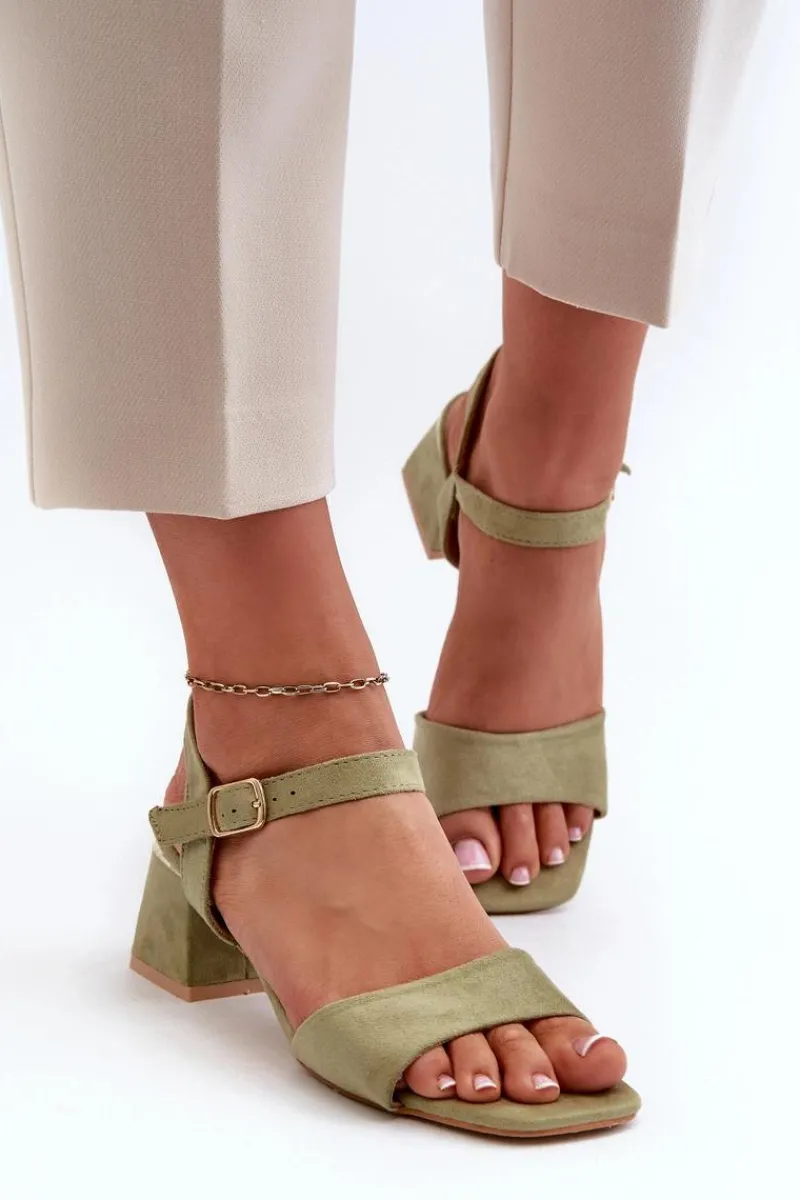Sandały damskie wykonane z miłego w dotyku eko zamszu. Obcas w postaci klocka zapewnia stabilność. Zapinane na regulowany pasek ze sprzączką, gwarantują idealne dopasowanie do stopy. Idealne do letnich sukienek! Przy wyborze rozmiaru prosimy sugerować się tabelą rozmiarów.