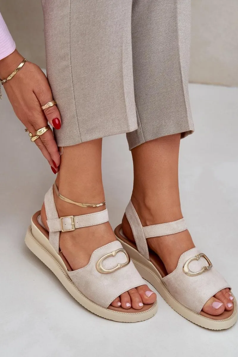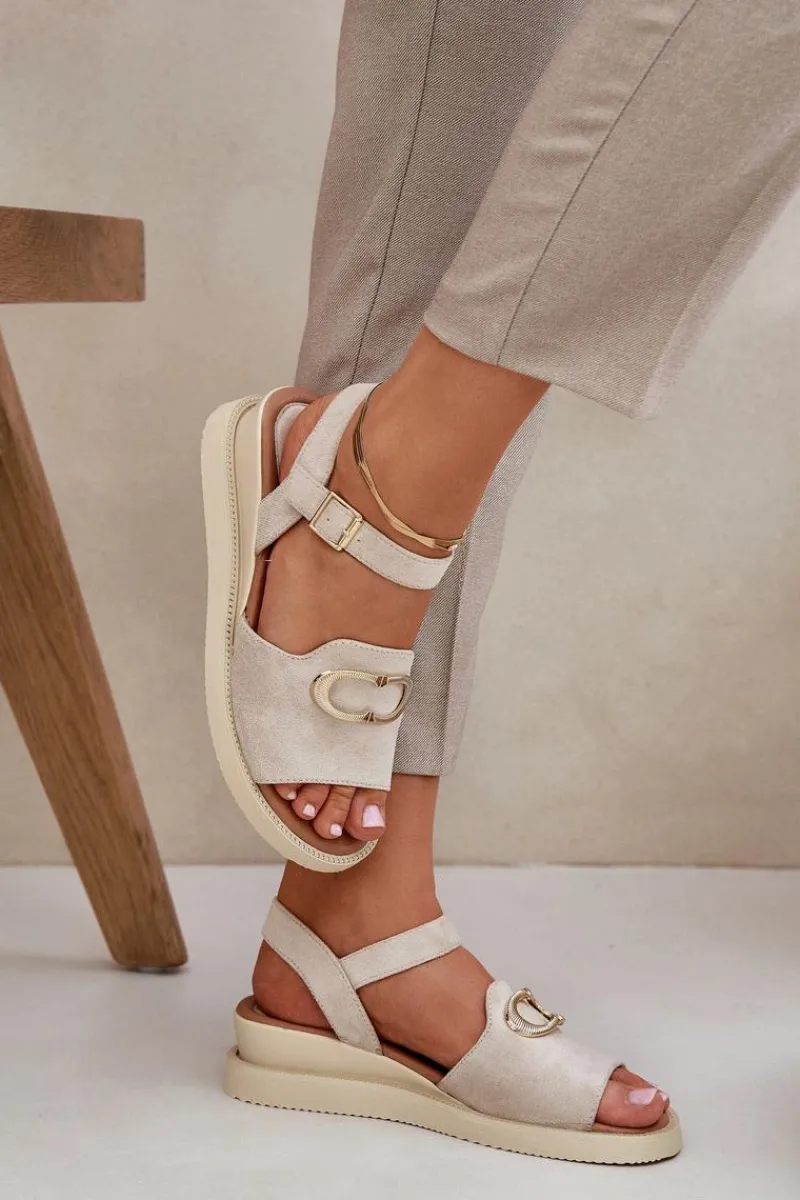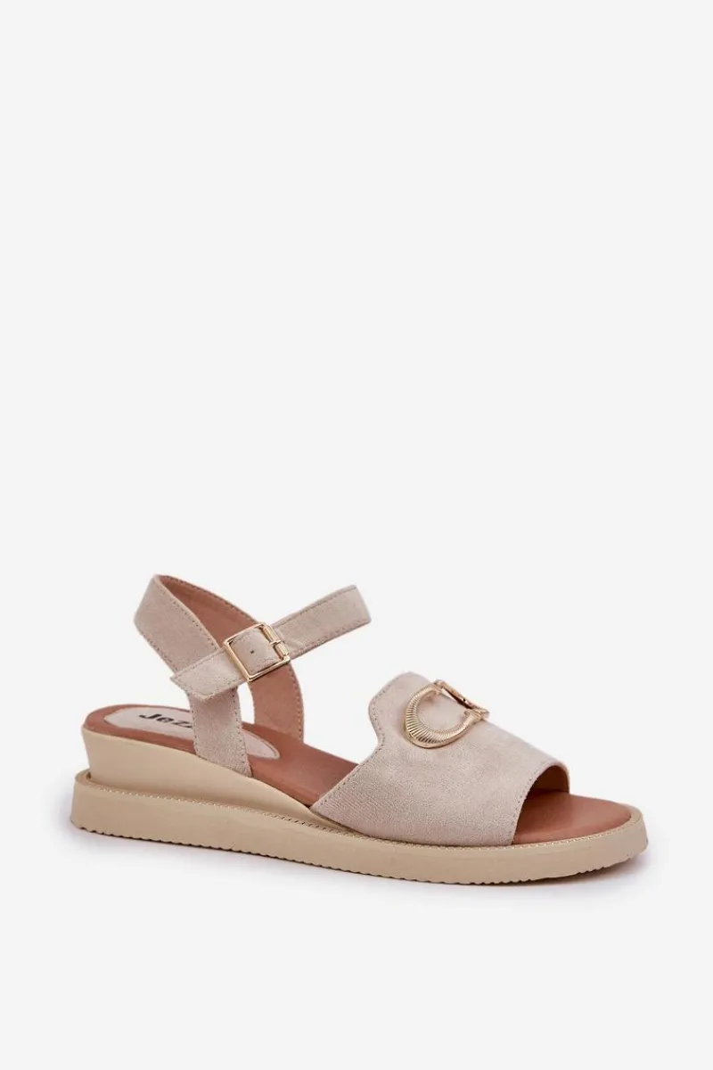 Sandały damskie od marki Jezzi. Wykonane z eko zamszu, to elegancka i komfortowa propozycja na ciepłe dni. Osadzone na koturnie, dodają lekkości i stabilności, zapewniając wygodę przez cały dzień. Z przodu ozdobny detal nadaje subtelnego uroku. Zapinane na regulowany pasek ze sprzączką, umożliwiają idealne dopasowanie do stopy. Te sandały doskonale łączą styl z funkcjonalnością, świetnie komponując się z letnimi stylizacjami. Przy wyborze rozmiaru prosimy sugerować się tabelą rozmiarów.