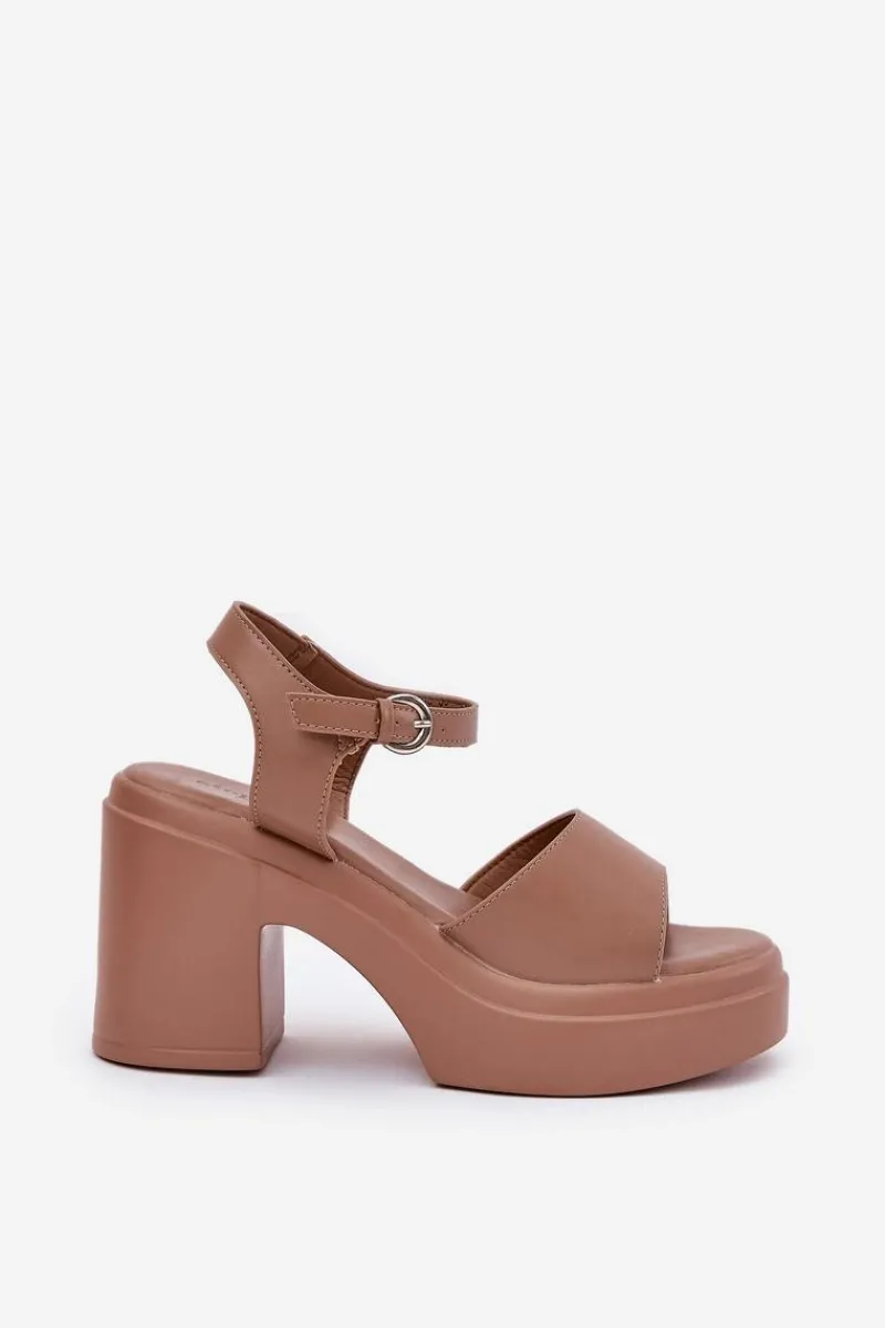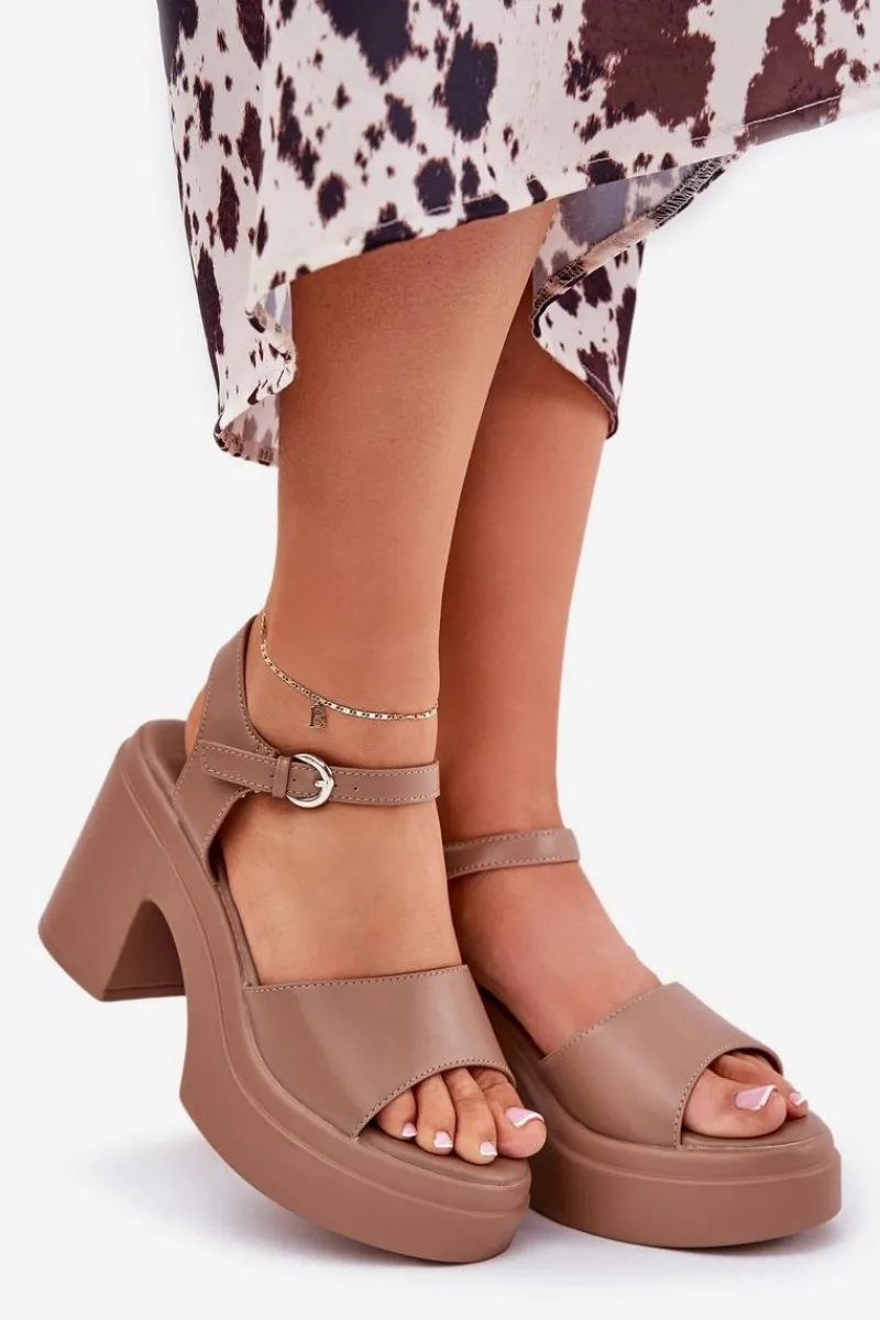 Sandały damskie wykonane ze skóry ekologicznej. Platforma oraz masywny obcas w postaci słupka dodają pewności kroku, jednocześnie zapewniając stabilność. Zapinane wokół kostki na sprzączkę z regulowanym paskiem. Doskonałe na wiele różnych okazji! Przy wyborze rozmiaru prosimy sugerować się tabelą rozmiarów.