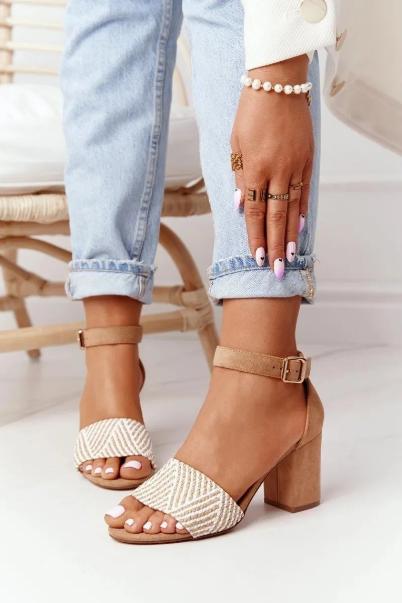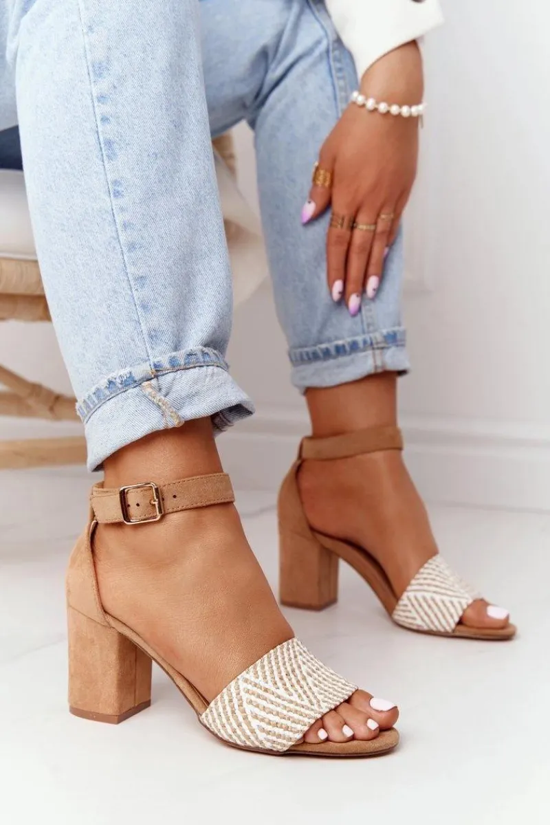 Piękne i wygodne sandały na słupku. Buty wykonane są z wysokiej jakości eko skóry, ozdobione modną plecionką. O Twój komfort zadba wkładka ze skóry naturalnej. Koniecznie sprawdź całą naszą kolekcję damskich sandałów! Przy wyborze rozmiaru prosimy kierować się tabelą rozmiarów.