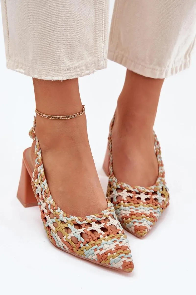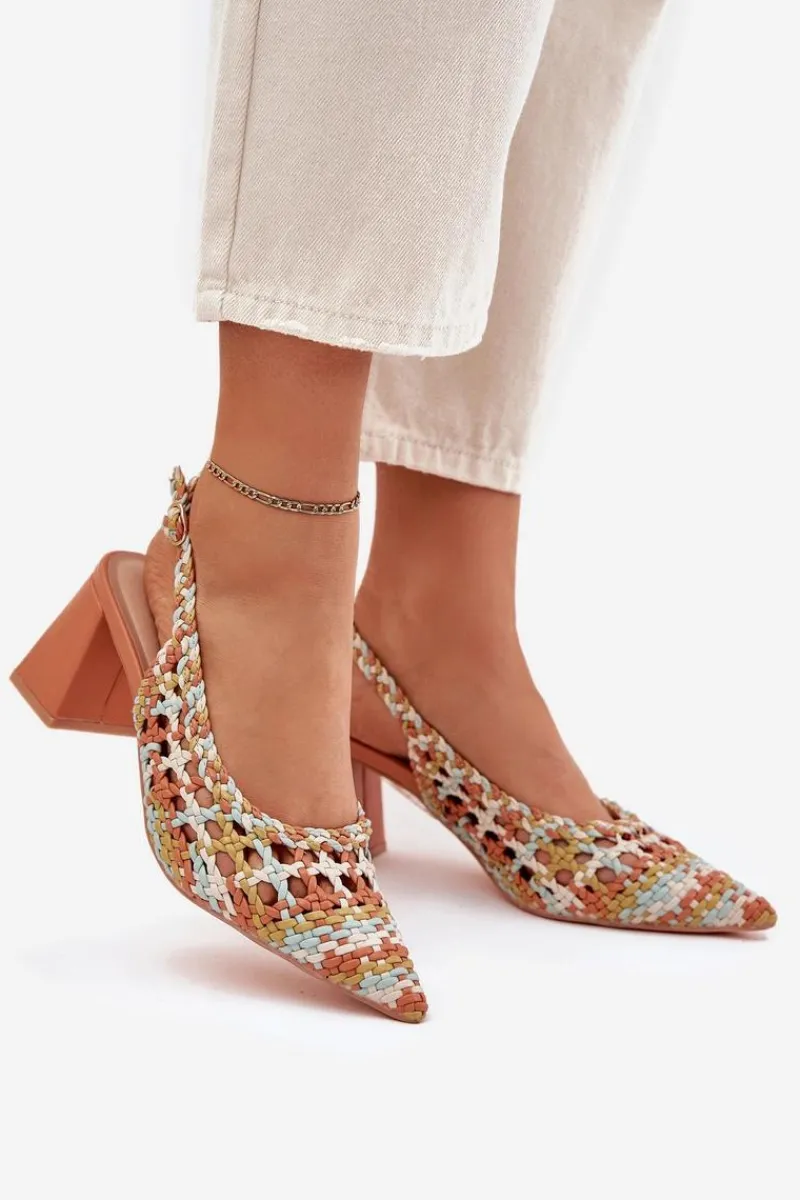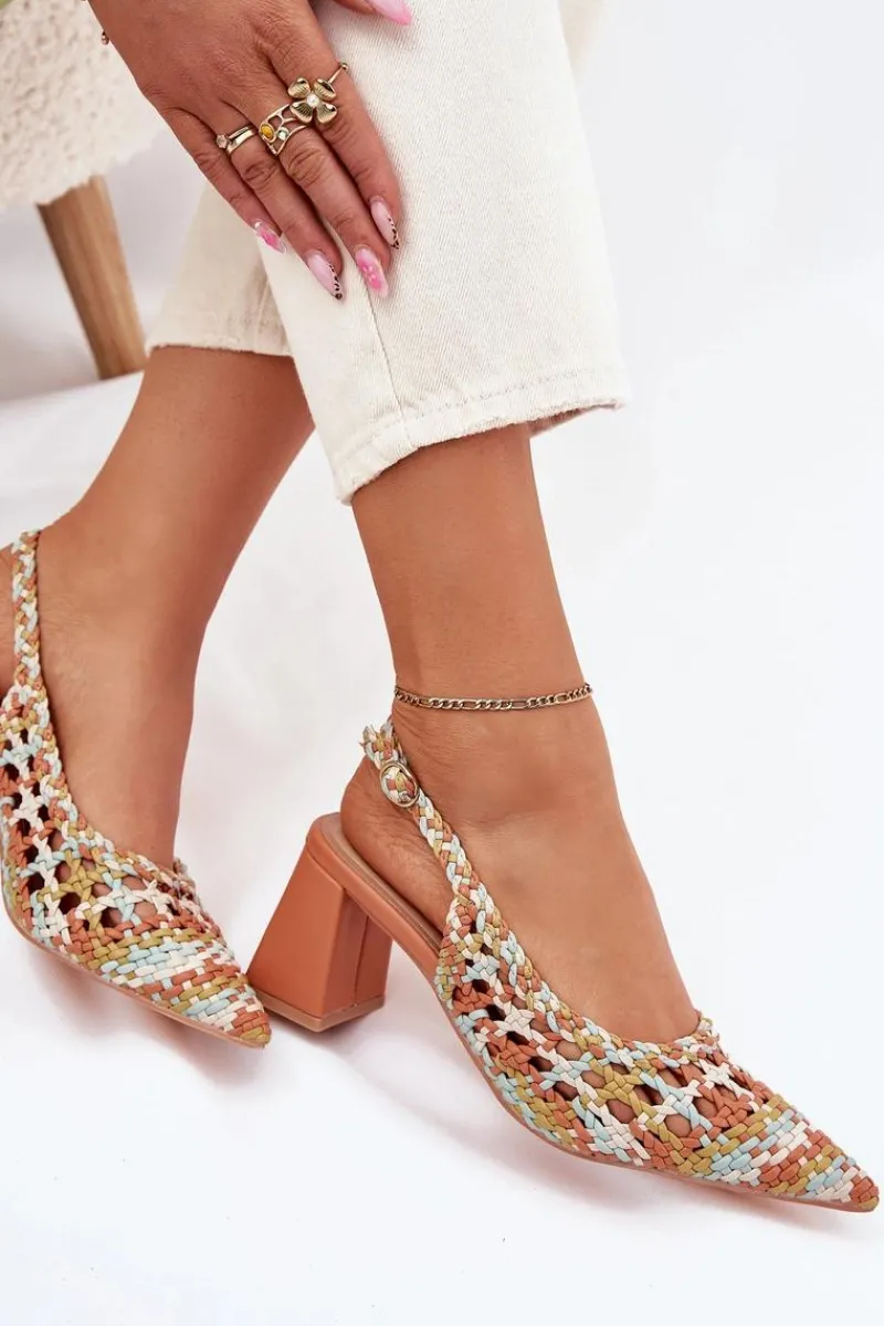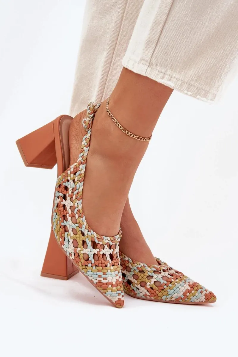 Sandały damskie z plecionki na obcasie słupku to stylowa propozycja na letnie dni. Szpiczaste noski nadają im smukłości, a zapinanie na sprzączkę z regulowanym paskiem zapewnia idealne dopasowanie do stopy. Miękka wkładka z eko skóry gwarantuje komfort przez cały dzień. Idealne na wieczorne wyjścia czy specjalne okazje, łączą stylowy design z wygodą. Przy wyborze rozmiaru prosimy sugerować się tabelą rozmiarów.