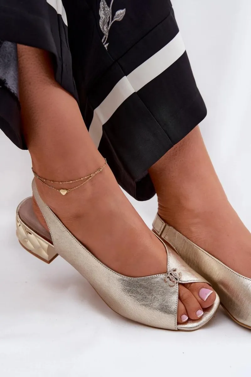 Sandały damskie od marki CheBello. Wykonane z wysokiej jakości skóry naturalnej. Model ten wyróżnia się obcasem, który nadaje nowoczesnego charakteru. Z przodu znajduje się mały, ozdobny detal. Niezwykle elegancki fason, który doskonale dopełni stylizacje z sukienkami oraz spodniami. Doskonałe na różne uroczystości i wieczorne wyjścia. Przy wyborze rozmiaru prosimy sugerować się tabelą rozmiarów.