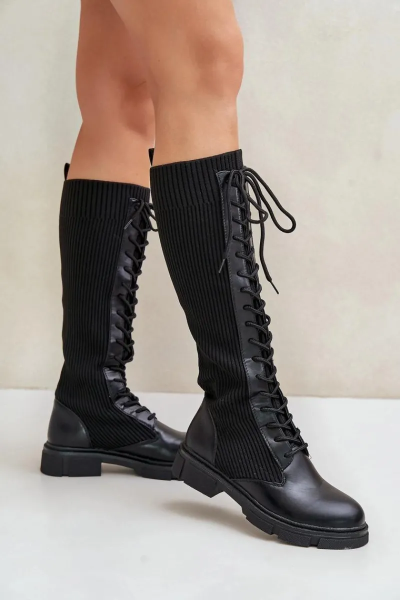 Clearance Sznurowane Kozaki Z Elastyczną Cholewką Czarne Vamilena Damskie Kozaki Ocieplane|Kozaki Wiosenne