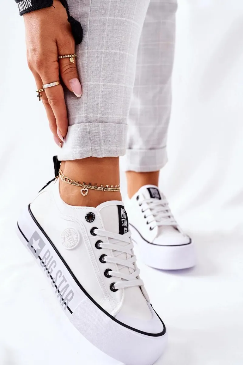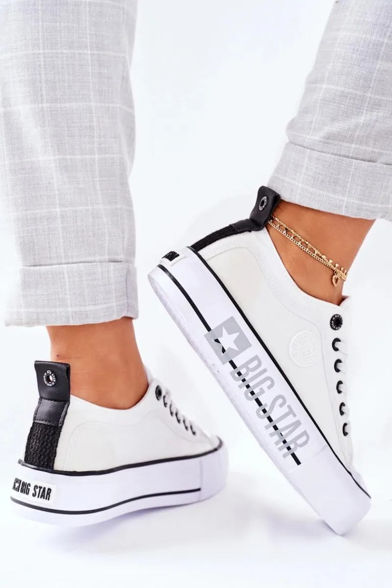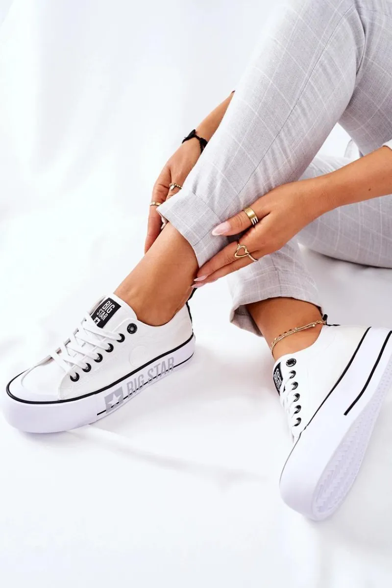 Damskie tenisówki na platformie polskiej marki BIG STAR. Kultowe już trampki pasują do wielu stylizacji. Buty dobrze dopasowują się do kształtu stopy, posiadają miękką, materiałową wkładkę oraz antypoślizgową podeszwę. Koniecznie sprawdź całą naszą kolekcję butów BIG STAR. Przy wyborze rozmiaru prosimy sugerować się tabelą rozmiarów.