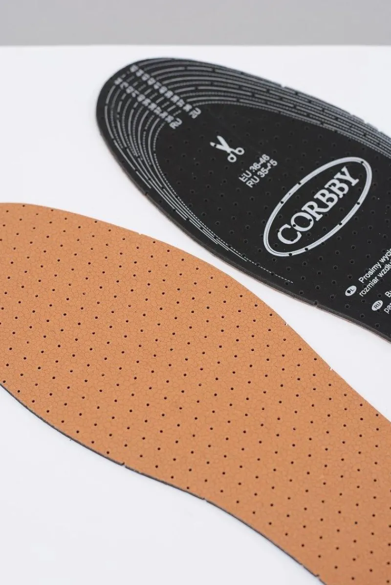 Dwuwarstwowe perforowane wkładki UNILEDER ze skóry naturalnej i pianki lateksowej. Wyścielają dokładnie dno obuwia, zabezpieczając stopy przed poślizgiem i powstaniem odparzeń. Pianka lateksowa zawiera węgiel aktywny, który pochłania nieprzyjemne zapachy. Zapewniając miękkość i wygodę, amortyzują nacisk na podeszwę. Polecane do półbutów i eleganckich butów wieczorowych. ROZMIAR UNIWERSALNY! Wystarczy dociąć wkładkę według zaznaczonych linii na odwrocie, aby dopasować ją do butów, można również dociąć je tak by idealnie dopasować użytkowanego obuwia.