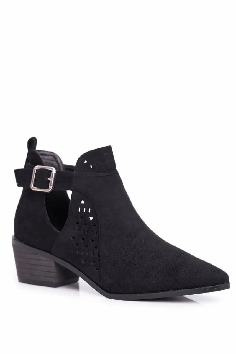 Piękne botki z noskiem w szpic wykonane z eko zamszu. Przy wyborze rozmiaru prosimy sugerować się tabelą rozmiarów.