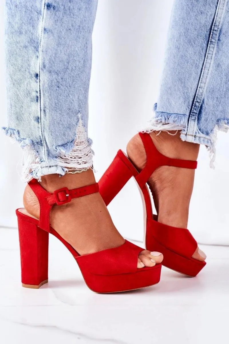 Eleganckie sandały na słupku wykonane z eko zamszu. Miękka wkładka z eko skóry oraz wygodny obcas zapewnią komfort. Przy wyborze rozmiaru prosimy sugerować się tabelą rozmiarów.