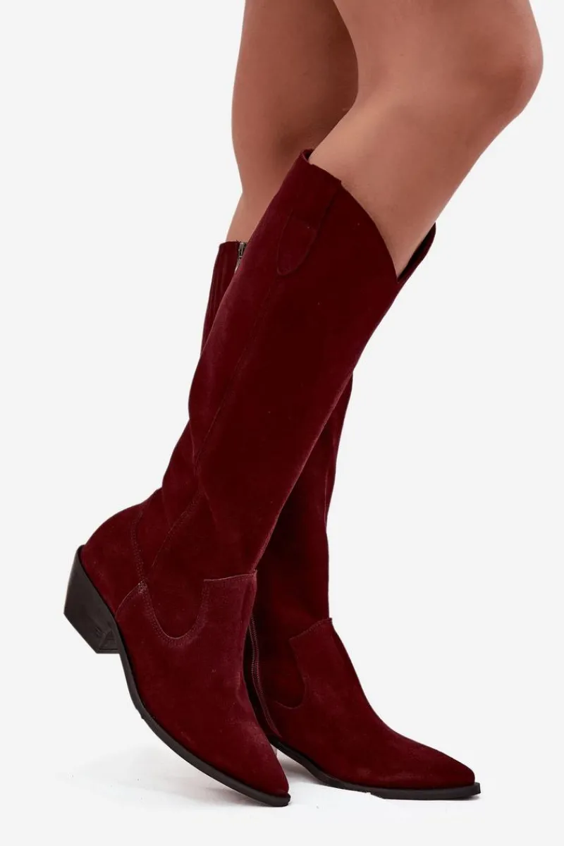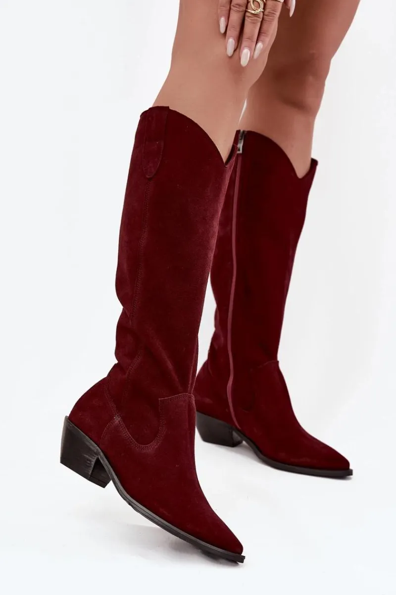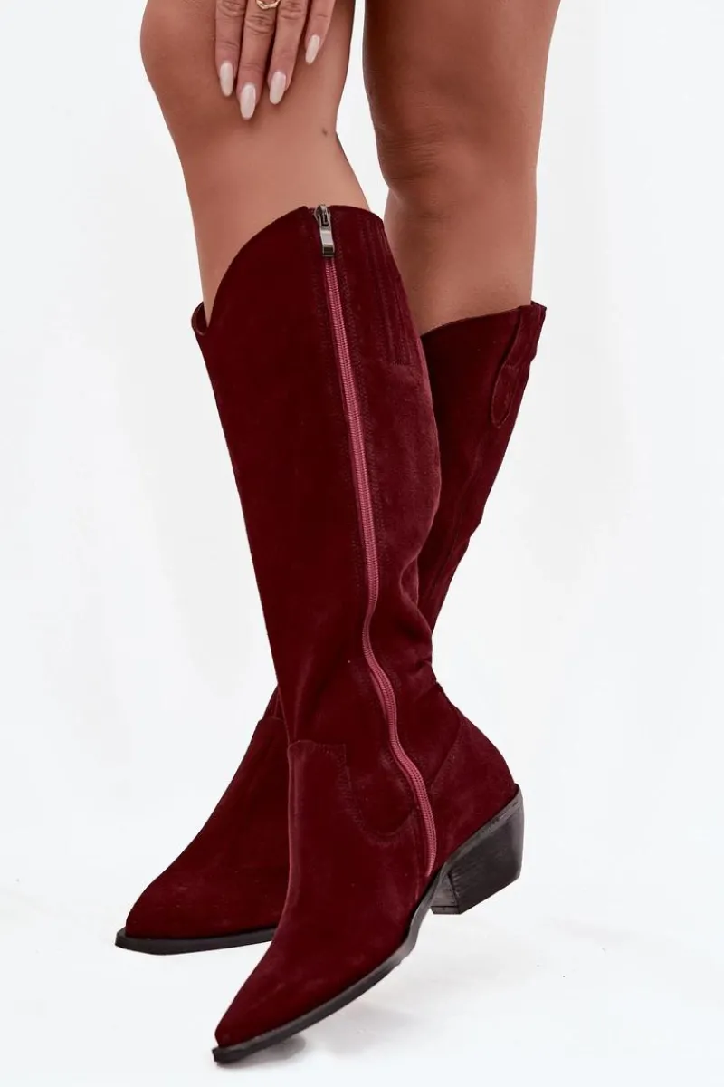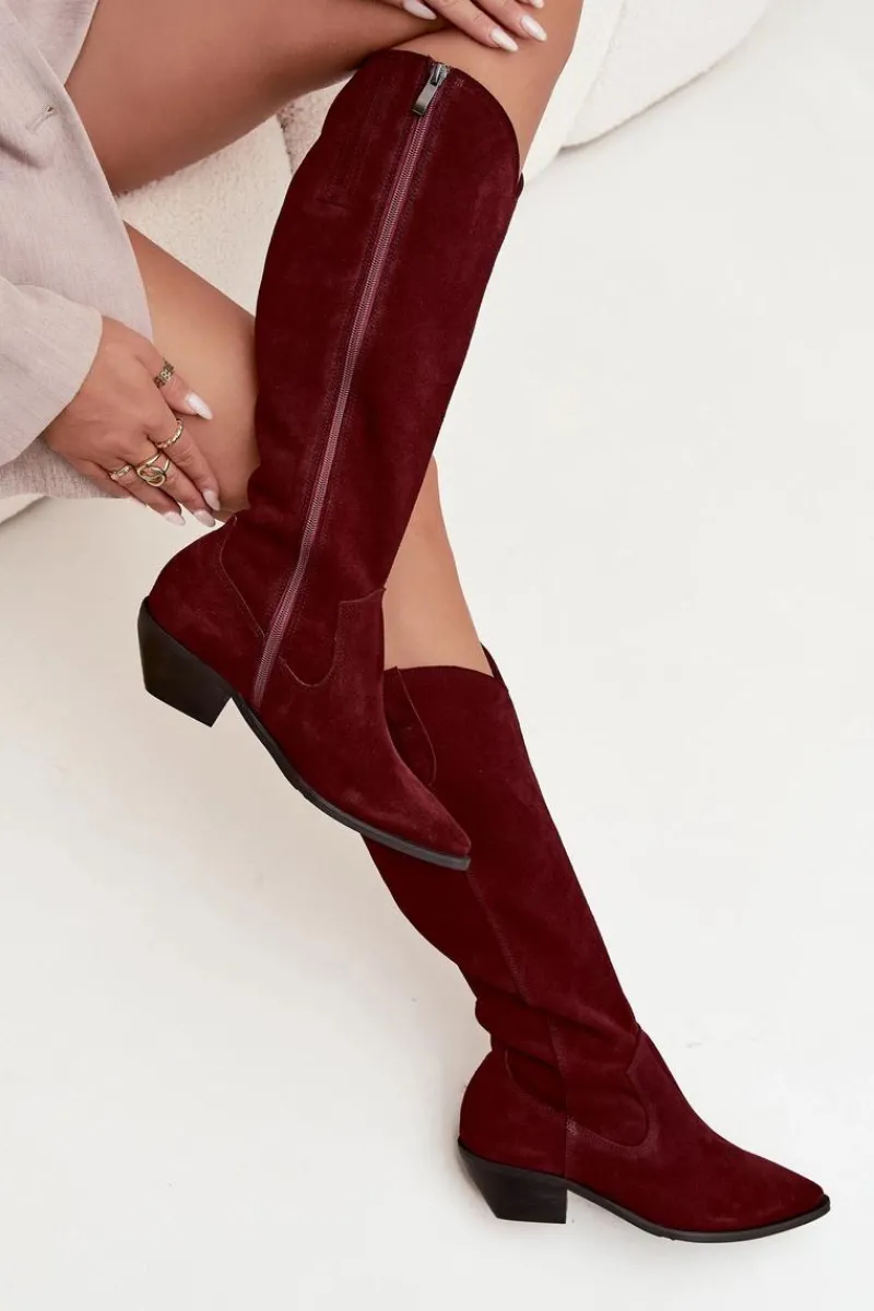 Kozaki kowbojki damskie wykonane z wysokiej jakości naturalnego zamszu to połączenie ponadczasowego stylu i wygody. Charakterystyczne szpiczaste noski nadają kobiecego, stylowego wyrazu, podkreślając sylwetkę i dodając im lekkości. Wnętrze zostało ocieplone filcem, co zapewnia komfort termiczny i wygodę podczas chłodniejszych dni. Dzięki temu kozaki doskonale sprawdzą się zarówno w codziennych stylizacjach, jak i podczas wyjątkowych okazji. To model inspirowany klasycznym stylem westernowym, który świetnie prezentuje się w połączeniu z sukienkami boho, spódnicami czy dopasowanymi jeansami. Idealny wybór dla kobiet ceniących modę, komfort i niepowtarzalny charakter obuwia. Przy wyborze rozmiaru prosimy sugerować się tabelą rozmiarów.