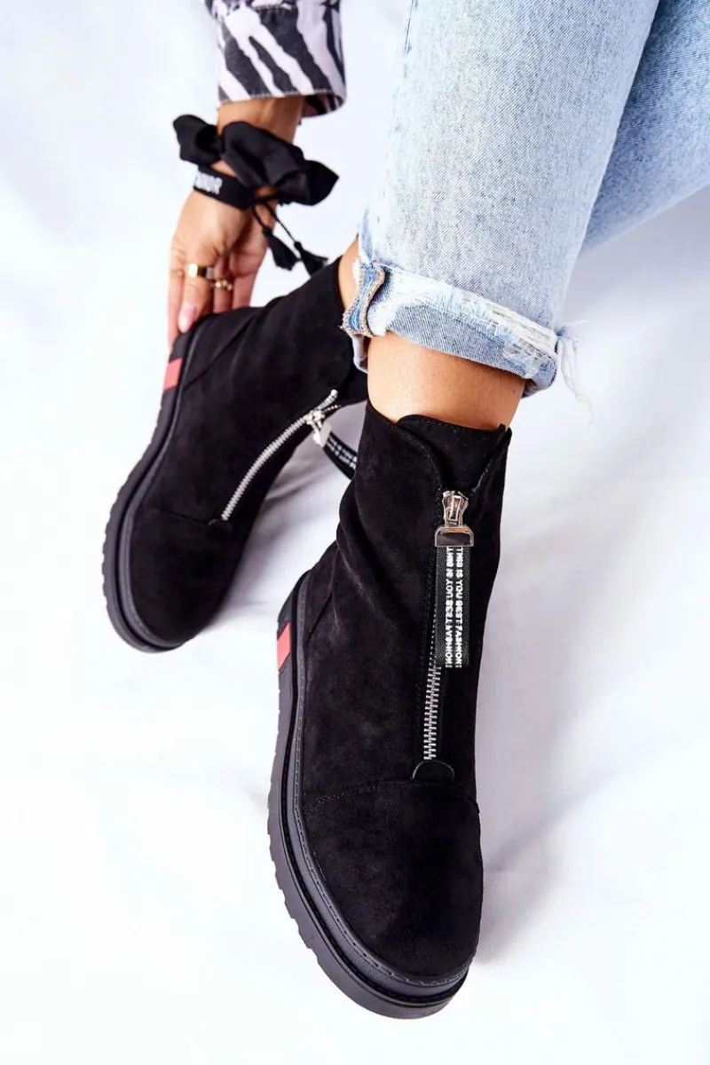 Czarne Botki|Botki Zimowe Damskie>Boto Botki Damskie Na Platformie Czarne Charlee
