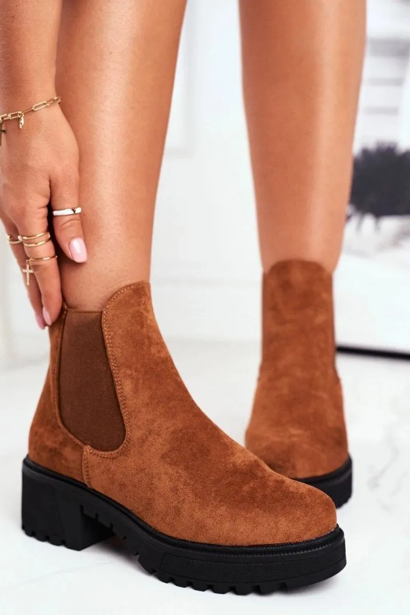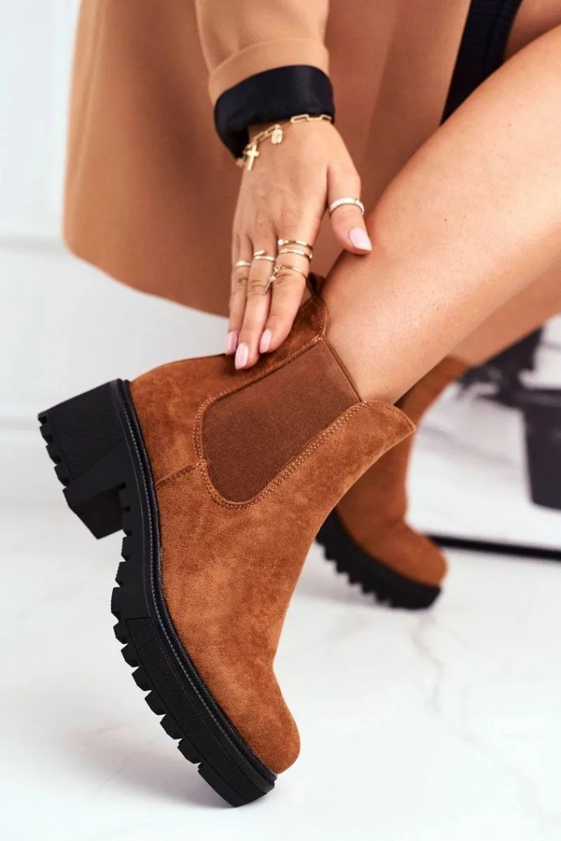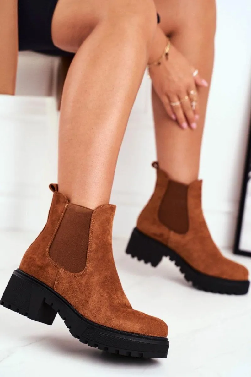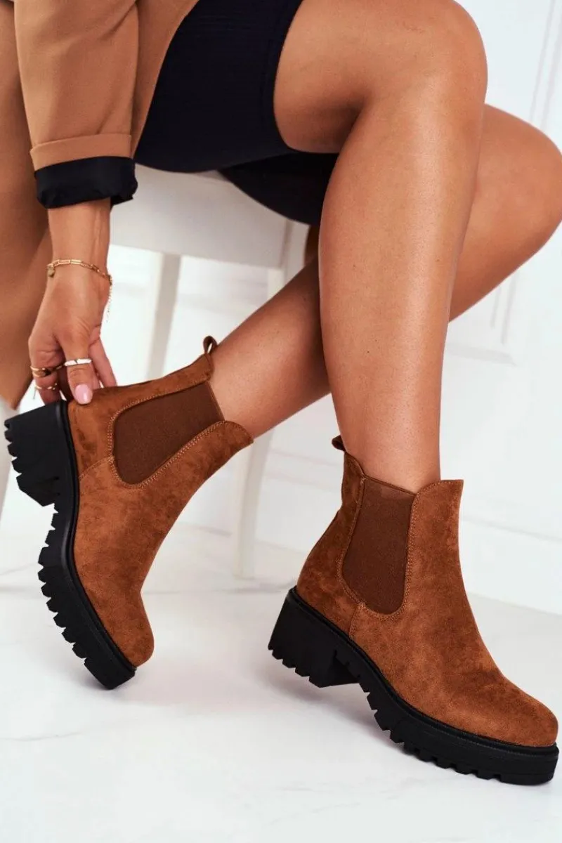 Czy może nas coś jeszcze zaskoczyć? Oczywiście! Spójrz na te przepiękne botki! Wykonane z ekologicznego zamszu, wewnątrz ocieplone kocem obuwniczym z krótkim włosiem, więc o ciepło w chłodnie dni nie musisz się martwić. Masywna podeszwa, wysoka cholewka połączona z gumami – botki świetnie wpiszą się w stylizacje glam rock lub grunge. Przy wyborze rozmiaru prosimy sugerować się tabelą rozmiarów.
