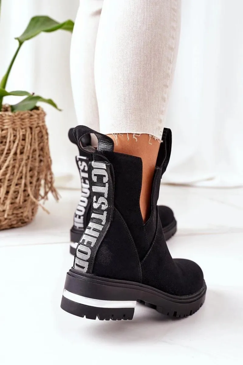 Sztyblety damskie wykonane z eko zamszu. Wnętrze botków ocieplone jest miłym w dotyku kocem obuwniczym. Przy wyborze rozmiaru prosimy sugerować się tabelą rozmiarów.