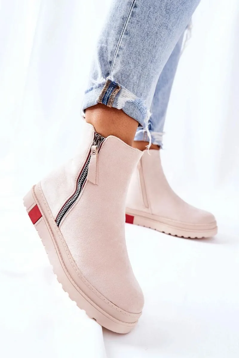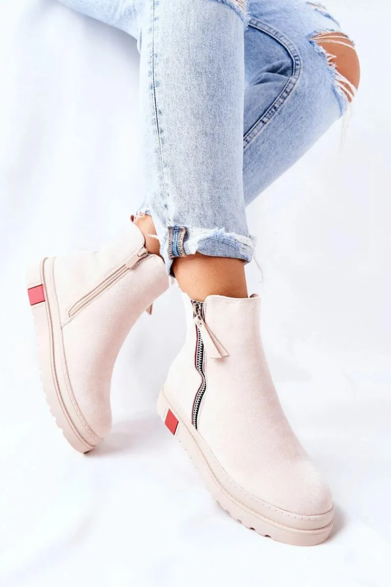 Sztyblety damskie wykonane z eko zamszu. Posiadają grubszą podeszwę, dzięki której są bardzo stabilne. Z zewnętrznej strony buta znajduje się ozdobny suwak. Natomiast z wewnętrznej suwak umożliwiający założenie obuwia. Koniecznie sprawdź pozostałe nasze modele! Przy wyborze rozmiaru prosimy sugerować się tabelą rozmiarów.