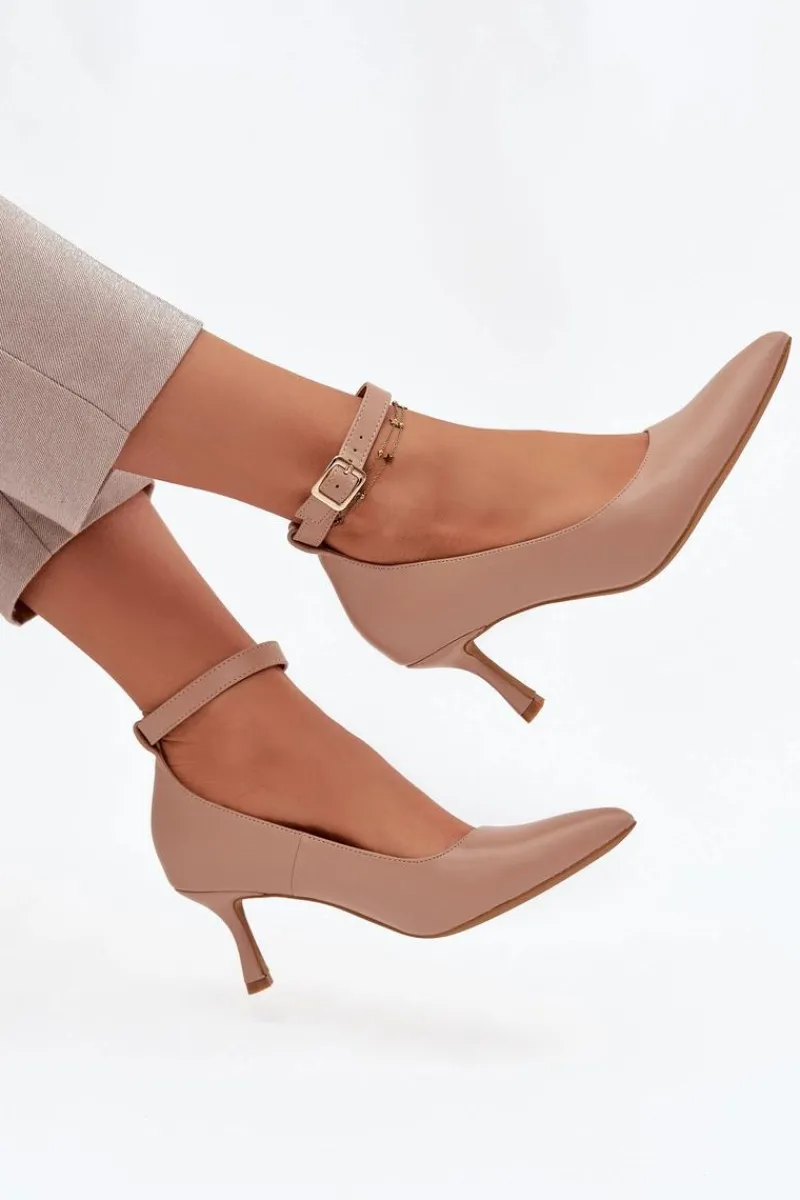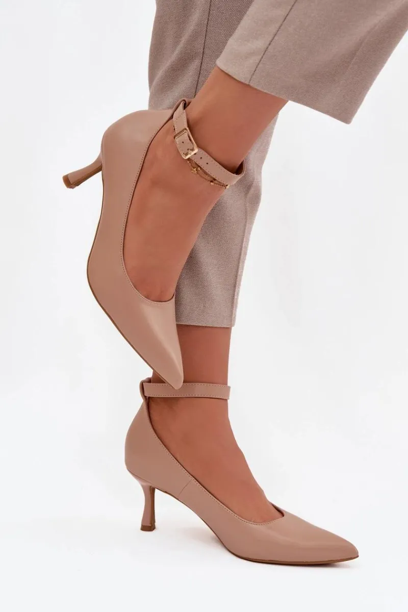 Szpilki – czółenka damskie wykonane z wysokiej jakości eko skóry to połączenie klasyki i kobiecego wdzięku. Model zachwyca eleganckim fasonem ze szpiczastym noskiem, który optycznie wysmukla nogi i dodaje sylwetce lekkości. Buty posiadają regulowany pasek ze sprzączką, który nie tylko stanowi ozdobny akcent, ale także zapewnia idealne dopasowanie do stopy i stabilność podczas chodzenia. Smukła szpilka pięknie podkreśla kobiecą sylwetkę, dodając jej elegancji i pewności siebie. Te czółenka doskonale sprawdzą się zarówno w eleganckich stylizacjach biurowych, jak i na specjalne okazje – do sukienek, spódnic czy klasycznych garniturów. Przy wyborze rozmiaru prosimy sugerować się tabelą rozmiarów.